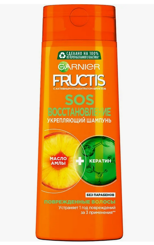 Fructis Шампунь для волос SOS Восстановление, укрепляющий, для секущихся и очень поврежденных волос, с Керафилом и Маслом Амлы, 400 мл