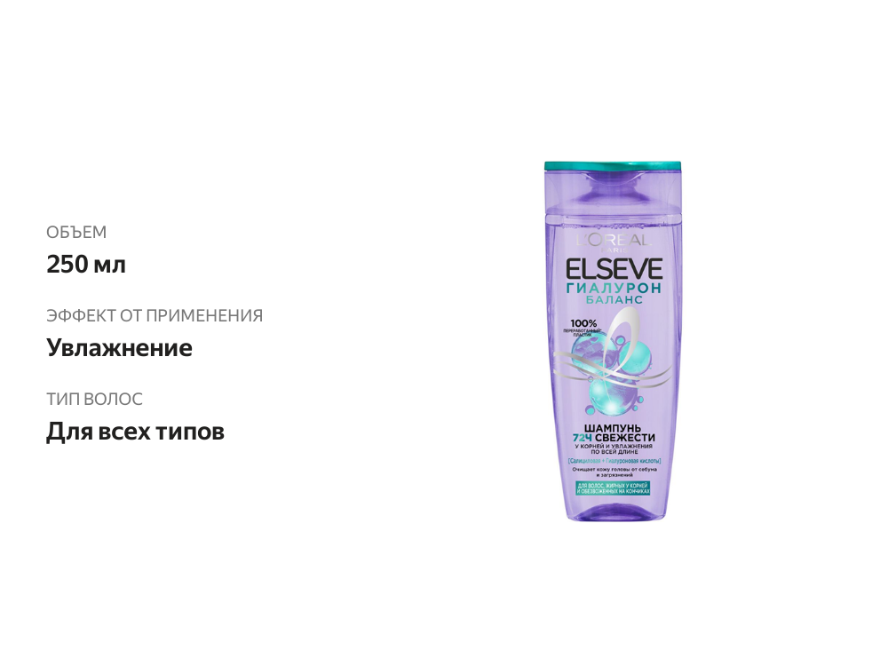 10 цен на Шампунь для волос L'Oreal Paris увлажняющий Elseve Гиалурон баланс 250мл