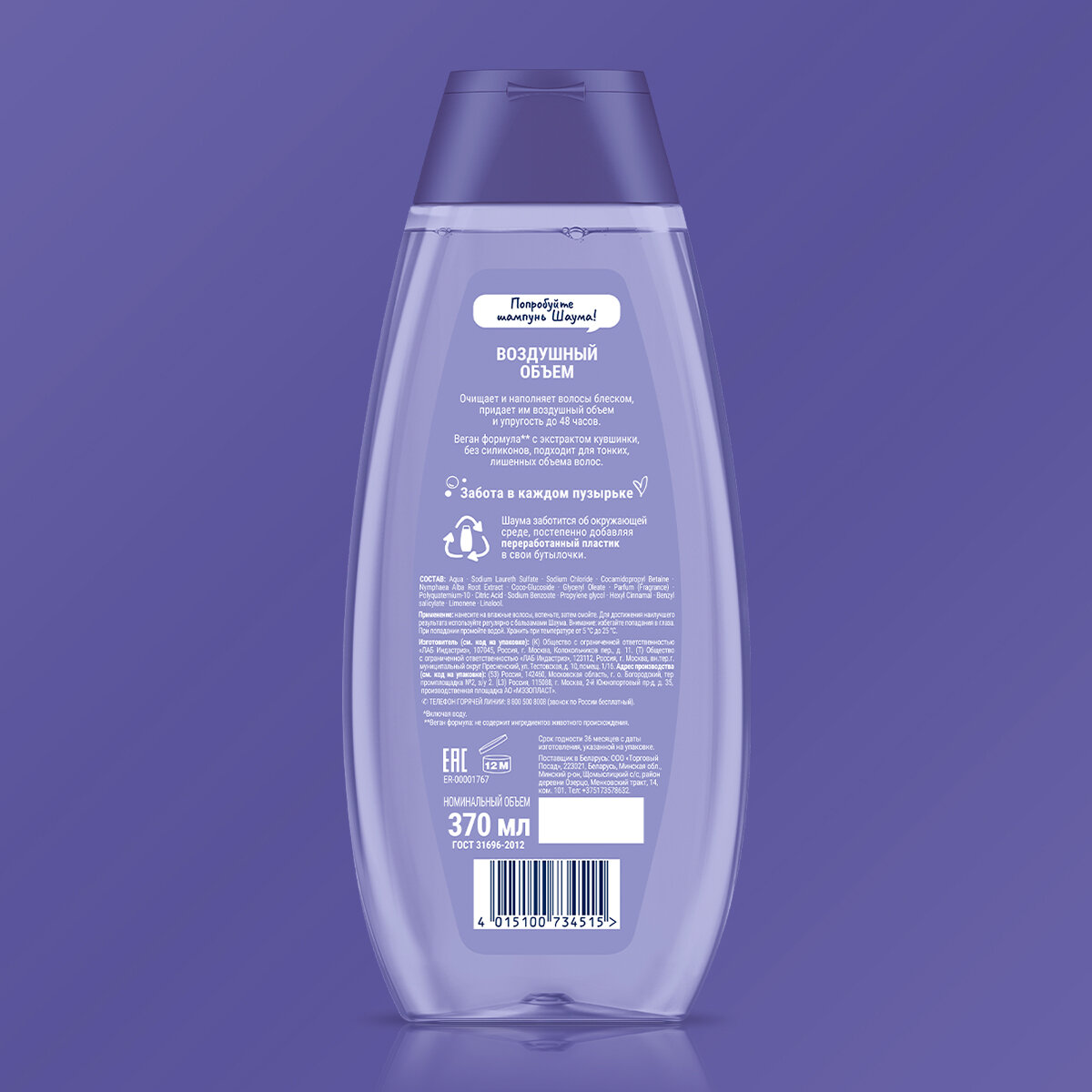 Шаума Шампунь для тонких, лишенных объема волос женский Воздушный объем, 370 мл информация:
