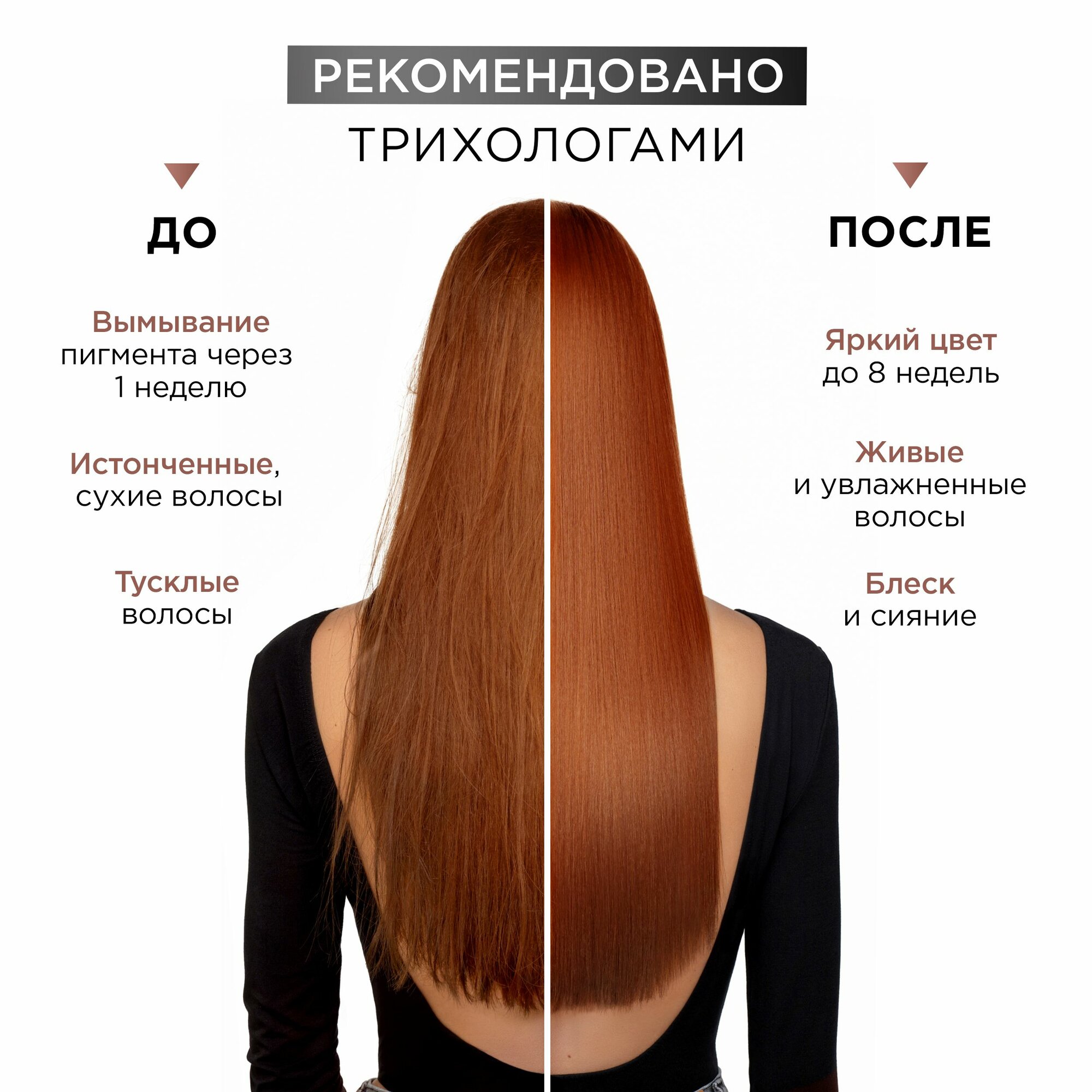 | Эффект | восстановление / очищение / придание блеска / увлажнение / укрепление |