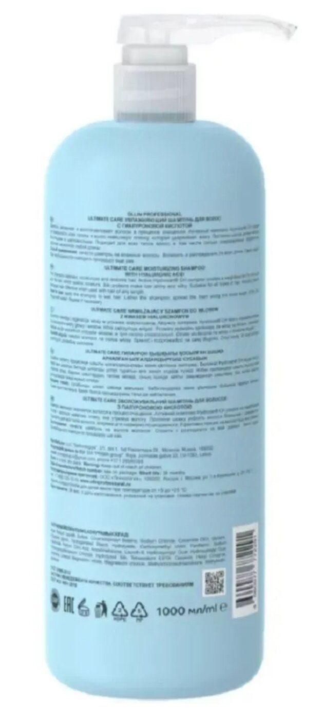 OLLIN, ULTIMATE CARE, Увлажняющий шампунь для волос с гиалуроновой кислотой, 1000 мл