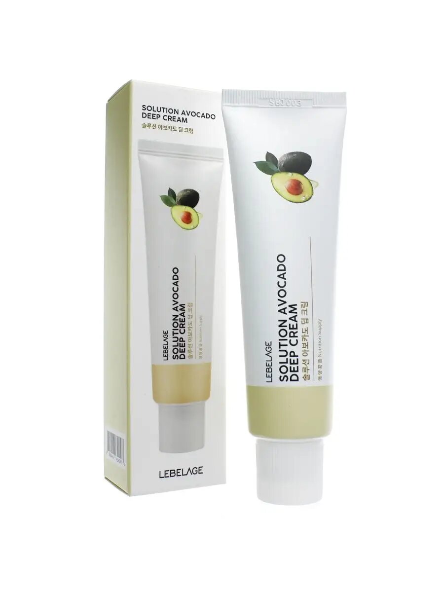 LEBELAGE Питательный крем для лица, шеи и зоны декольте с экстрактом авокадо и пептидами. Solution Avocado Deep Cream. Антивозрастная уходовая корейская косметика от морщин