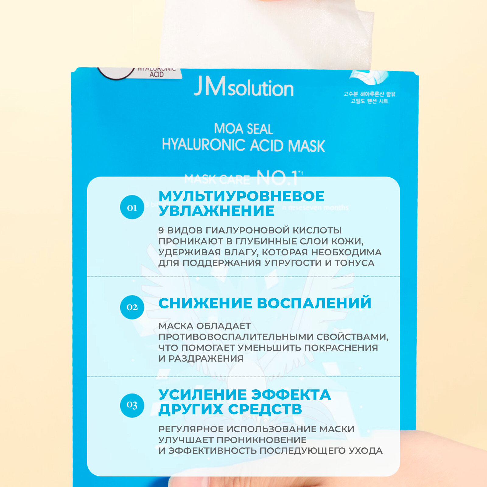 Увлажняющие маски для лица с гиалуроновой кислотой JMsolution Moa Seal Hyaluronic Acid Mask, 3 штуки информация: