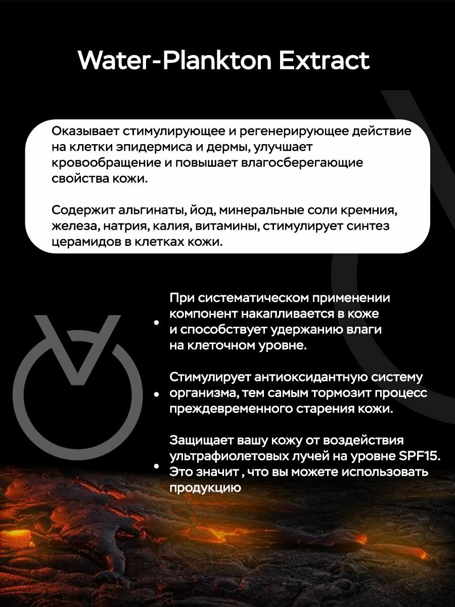 | Состав | Aqua, Cetearyl Alcohol, Glyceryl Stearate, PEG-100 Stearate, Glycerin, Glycine Soja Oil, Cocamidopropyl Betaine, Hydrated Silica, Dimethicone, Butyrospermum Parkii Oil, Olea Europaea Oil, Macadamia Ternifolia Seed Oil, Ceteareth-20, Propylene Glycol, Phenoxyethanol, Ethylhexylglycerin, Water-Plankton Extract, Zingiber Extract, Camellia Sinensis Leaf Extract, Aloe Barbadensis (Aloe Vera) Leaf Gel, Menthol, Acrylates/C10-30 Alkyl Acrylate Crosspolymer, Tocopheryl Acetate, Parfum, Sodium Hydroxide, BHT, CI 74160. |