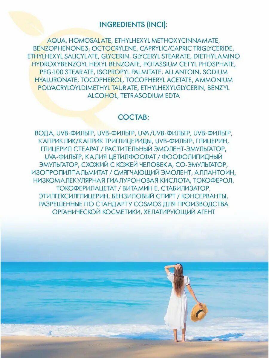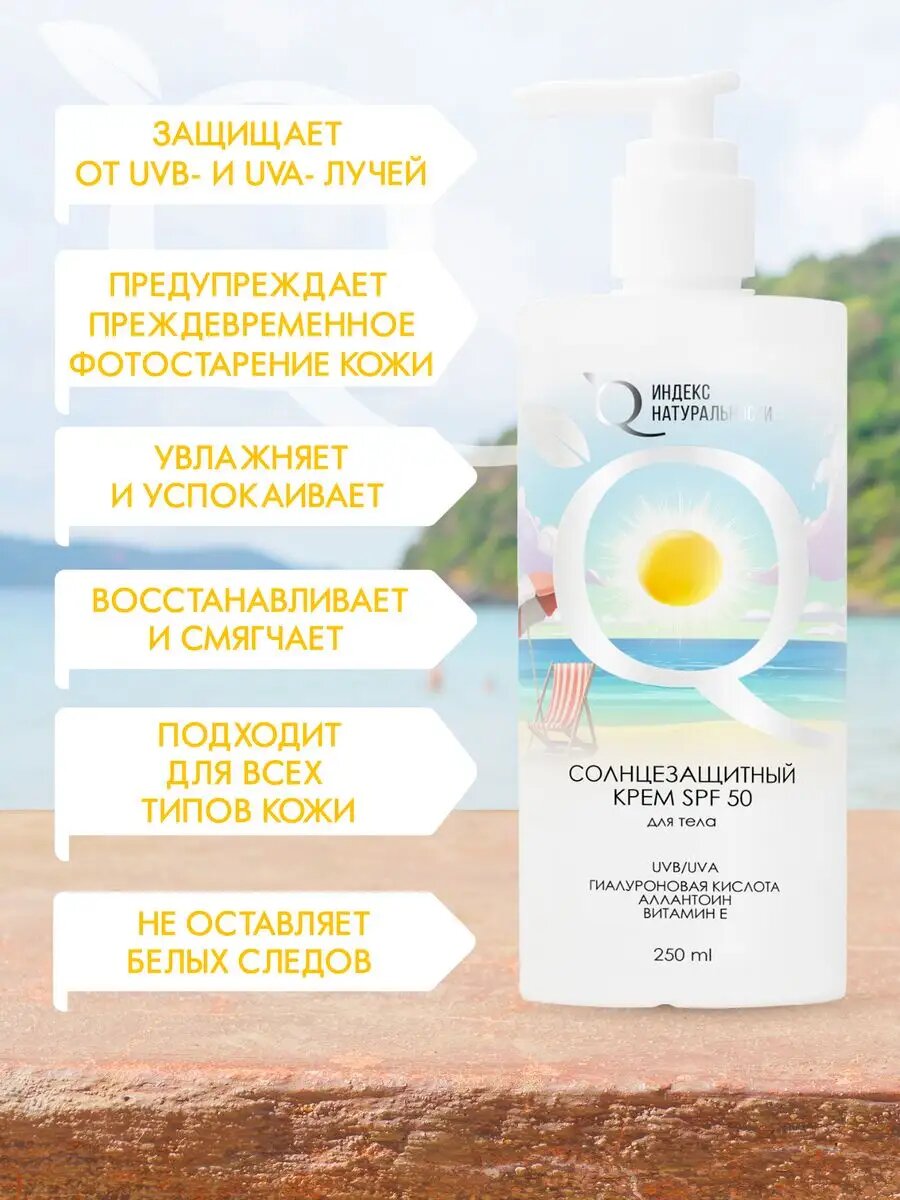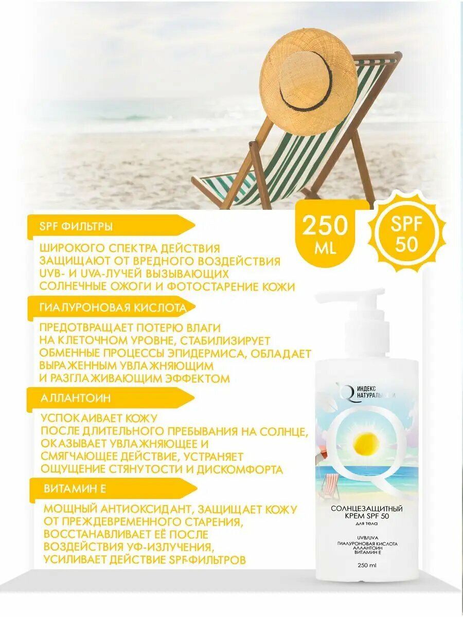 Солнцезащитный крем SPF50 для тела Увлажняющий индекс натуральности информация: