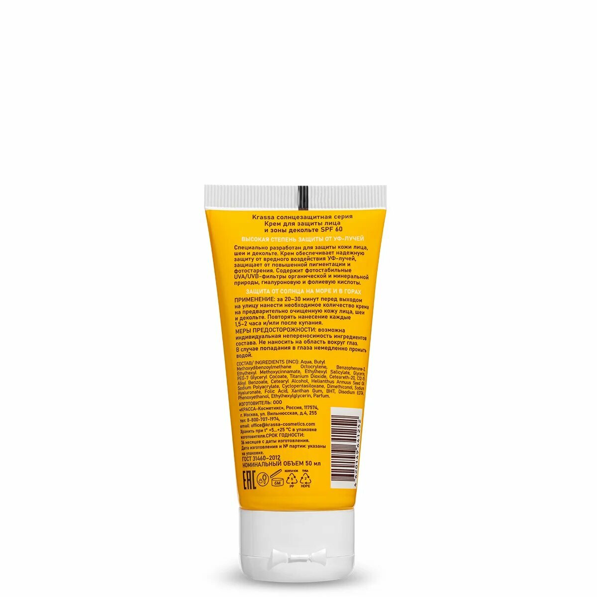 Крем для защиты лица, зоны декольте и татуажа Krassa Sun Expert SPF 60 50мл. информация: