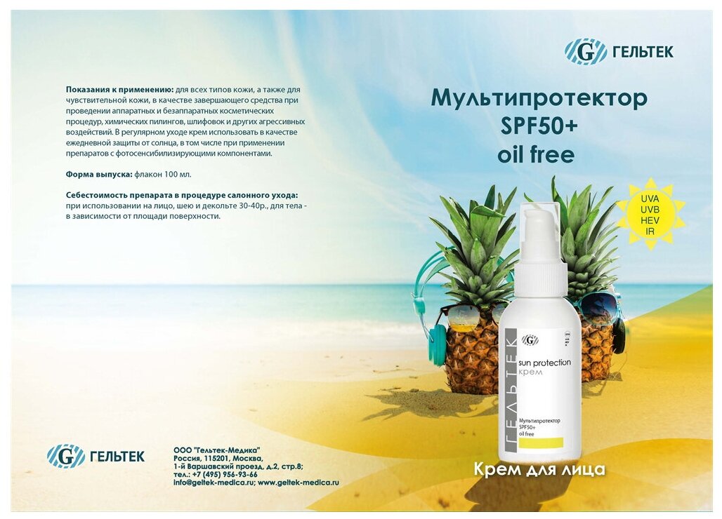 Гельтек Крем Mультипротектор SPF50+ oil free, 100 гр информация: