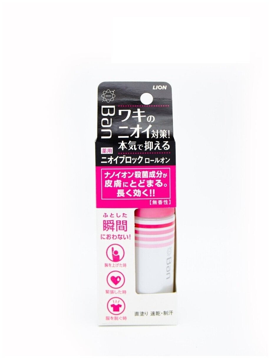 LION Ban Roll On Дезодорант-антиперспирант роликовый, нано-ионный, без аромата, 40мл. информация: