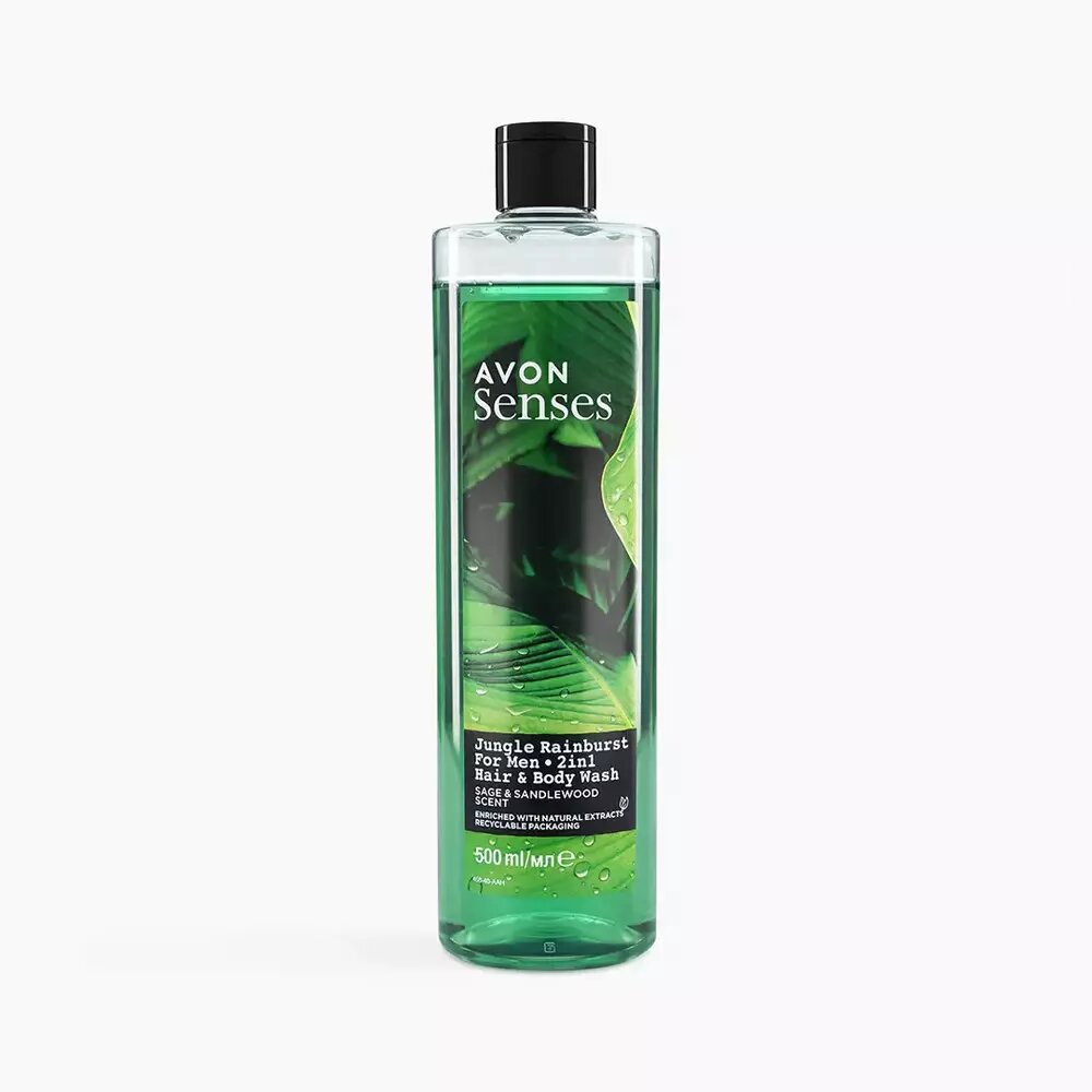 AVON Senses Шампунь-гель для душа для мужчин Тропические джунгли (Сила притяжения), 500 мл