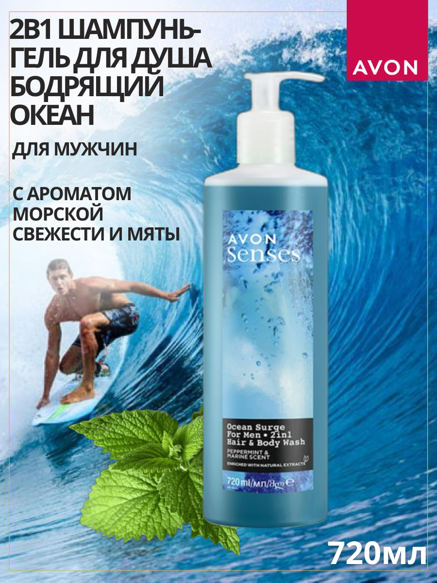 Шампунь-гель для душа Avon Senses для мужчин Бодрящий океан 250 мл. х 2 шт. 589 ₽