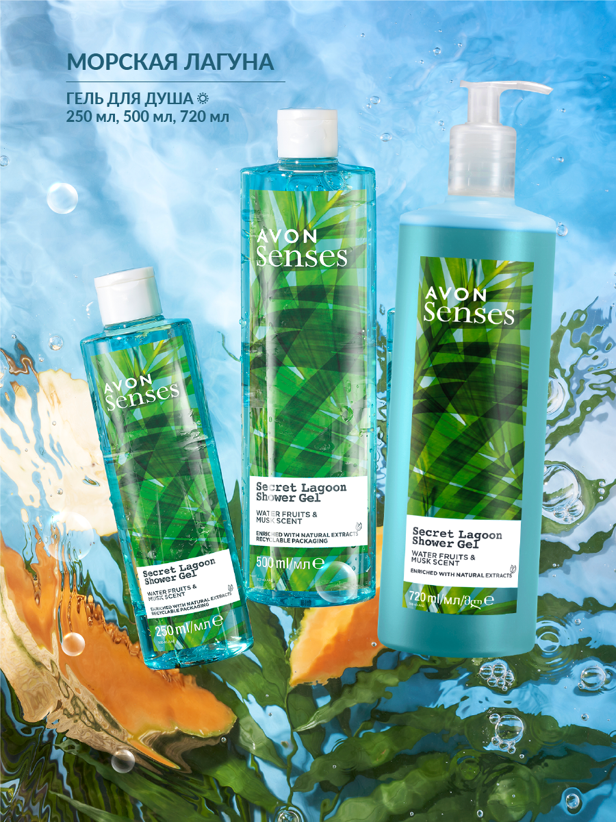 10 цен на Гель для душа Avon Senses Морская лагуна 720 мл.