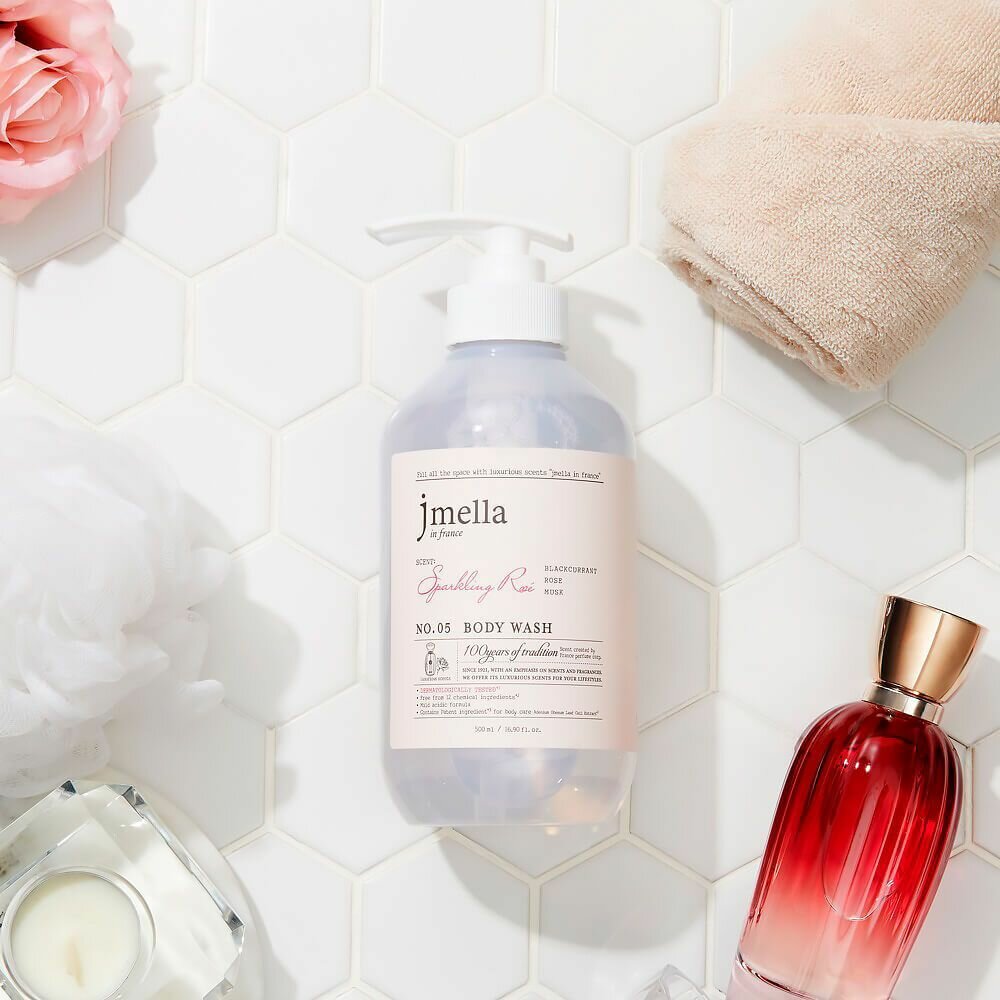 JMELLA Гель для душа парфюмированный с экстрактом чёрной смородины, розы и мускуса №5 In France Sparkling Rose' Body Wash 500ml Корейская косметика