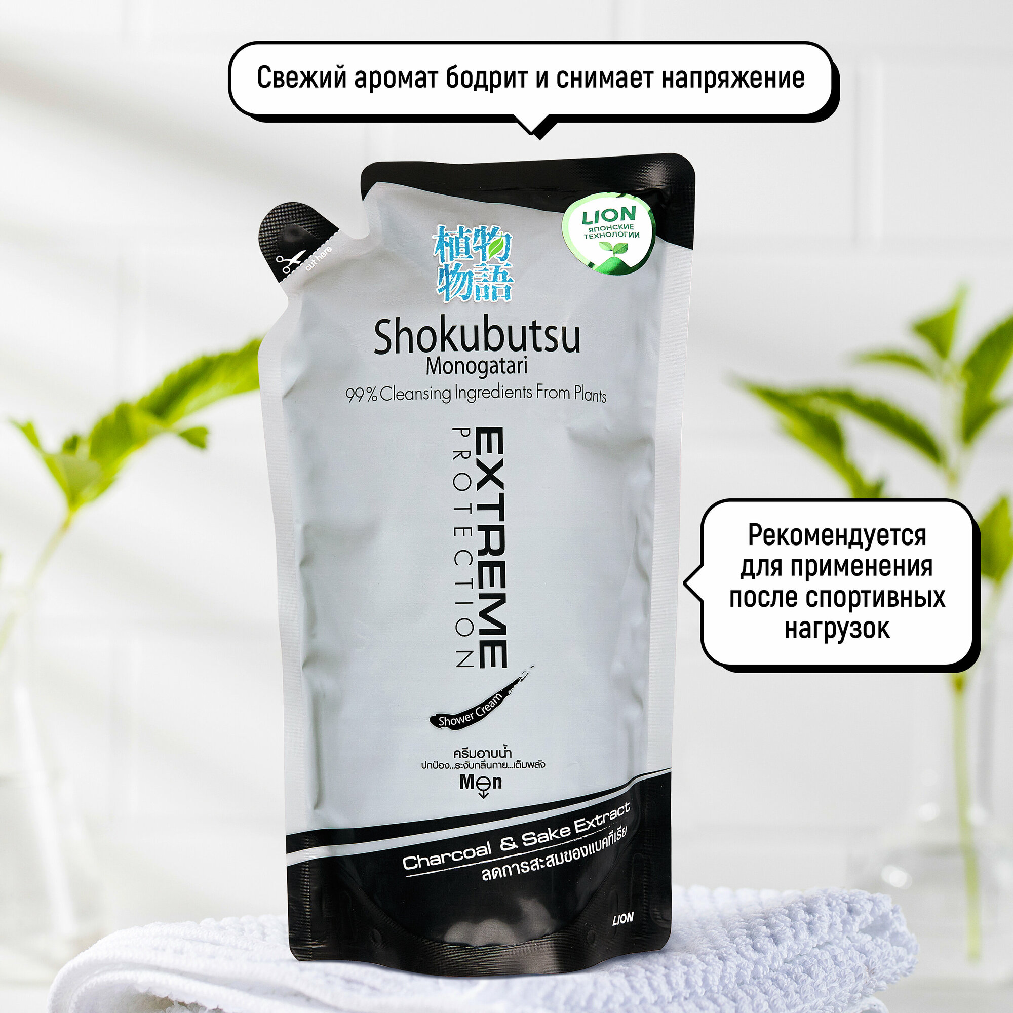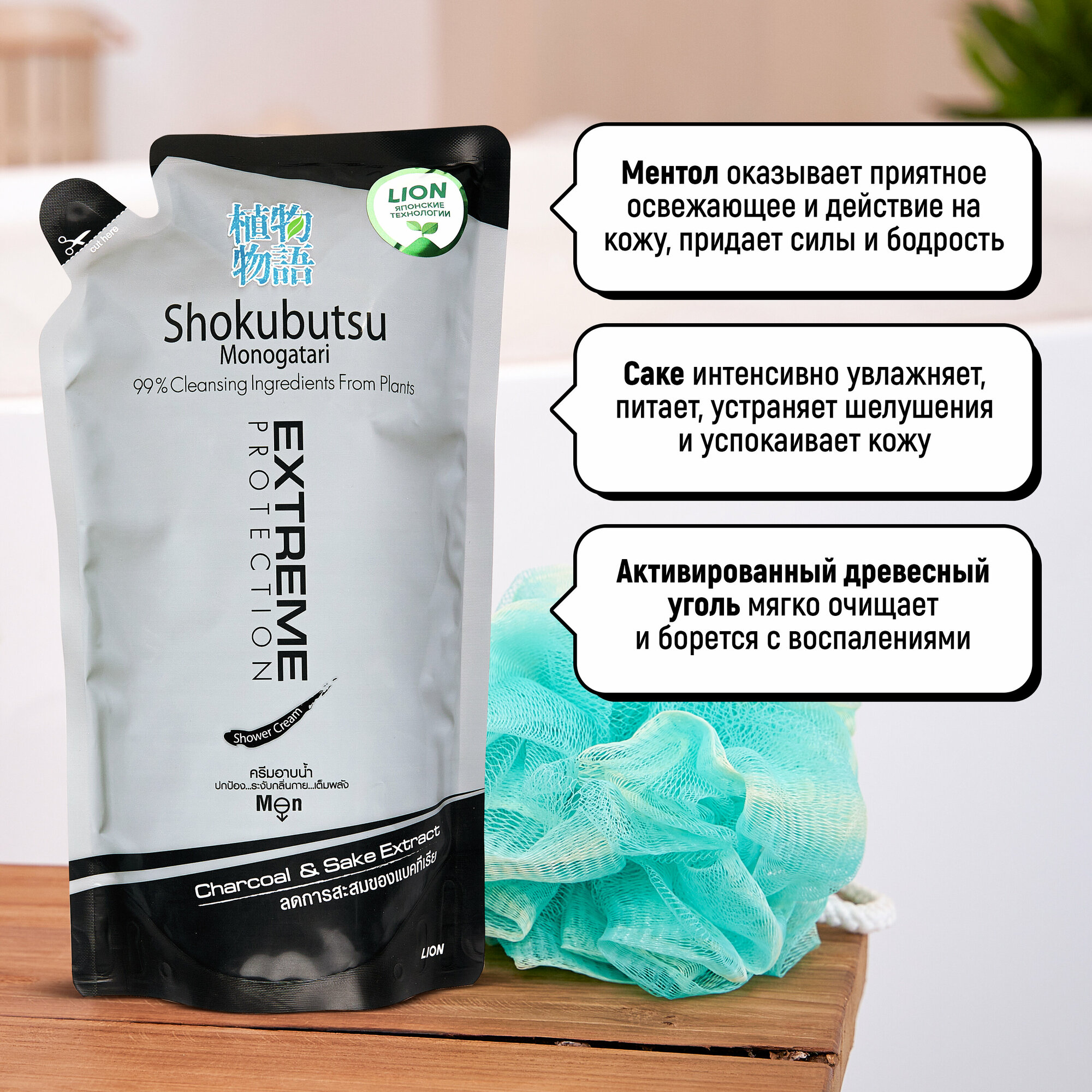 LION Крем-гель для душа мужской Shokubutsu увлажняющий, охлаждающий, с ментолом и экстрактом древесного угля, мягкая упаковка (запасной сменный блок), 500 мл информация:
