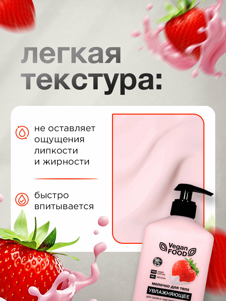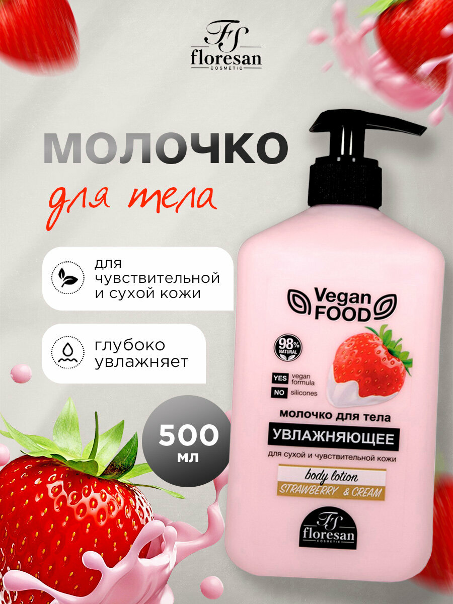 Молочко для тела увлажняющее Floresan Vegan food, Клубника, для сухой и чувствительной кожи, 500 мл