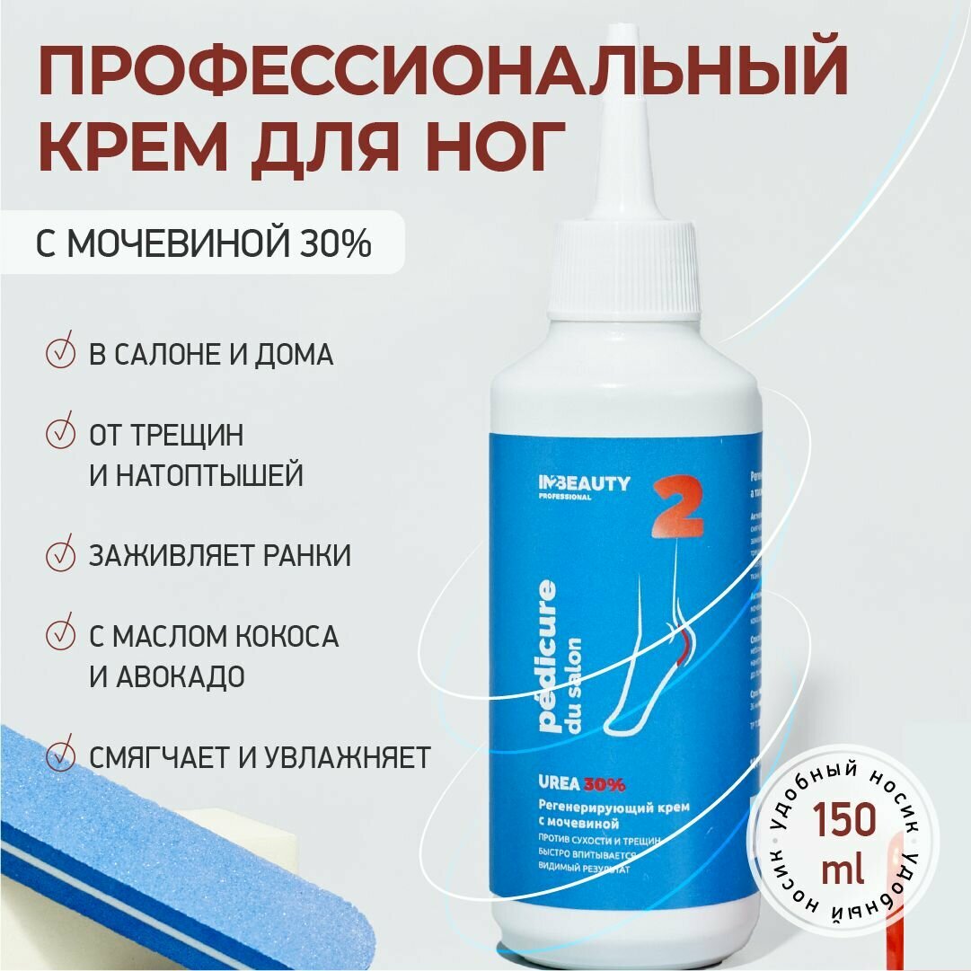 IN2BEAUTY Professional/ Крем для ног профессиональный UREA 30%, с мочевиной 30%, от трещин и натоптышей, для очень сухой кожи, противогрибковый, 150мл с дозатором