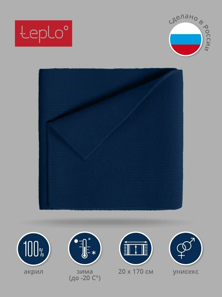 Шарф teplo для мужчин и женщин,170х20 см, универсальный, темно-синий информация: