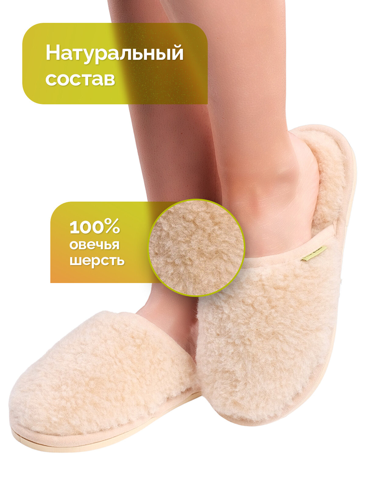 Тапочки из шерсти Холти "Гармония" теплые меховые домашние женские (37), бежевый 1 649 ₽
