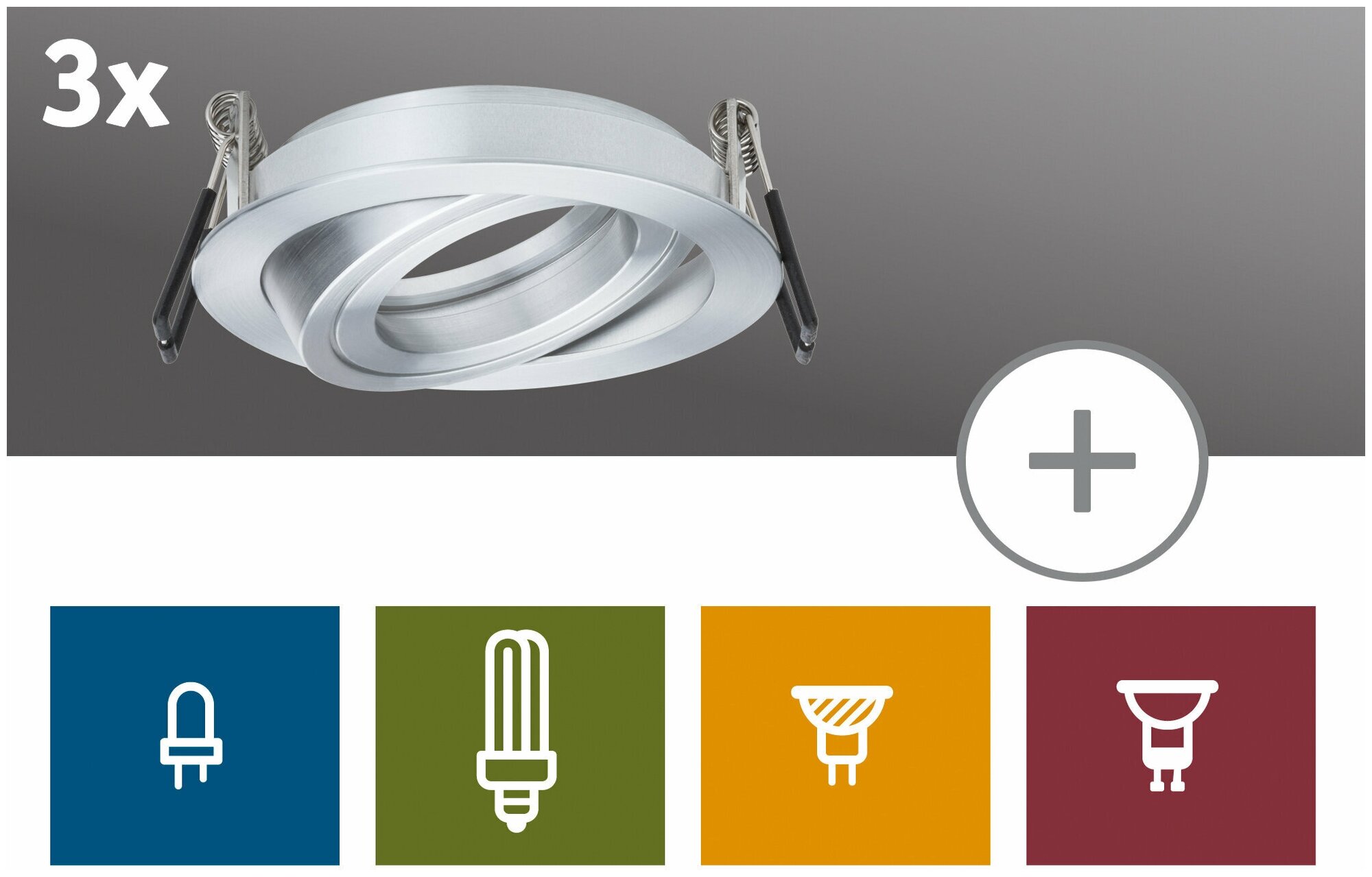 Светильник встраиваемый Paulmann IP23 D90 Без лампы Без цоколя Алюминий тертый Набор 3шт 92594 информация: