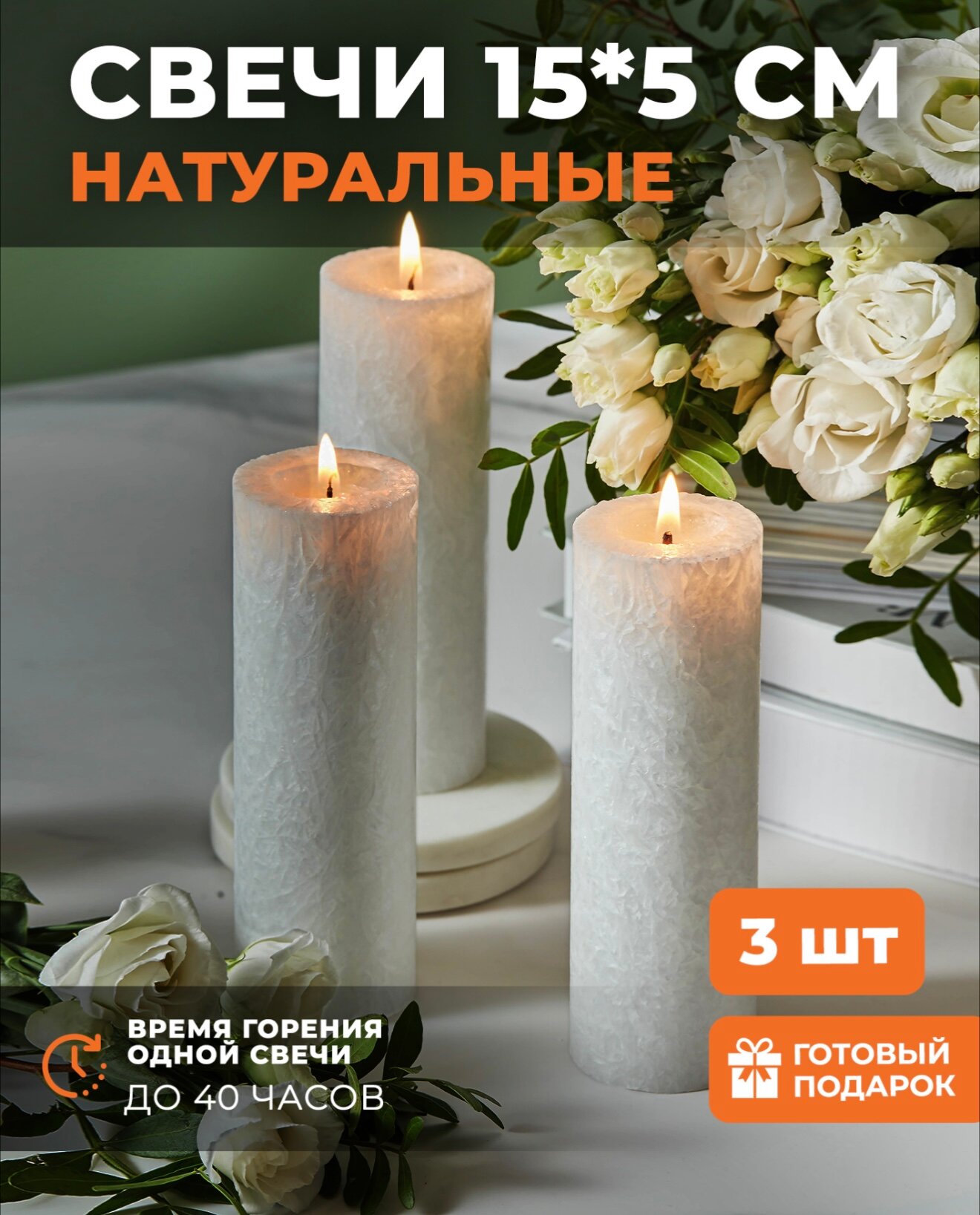 Свечи столбики тонкие набор 3 шт белые "RosCandles" информация:
