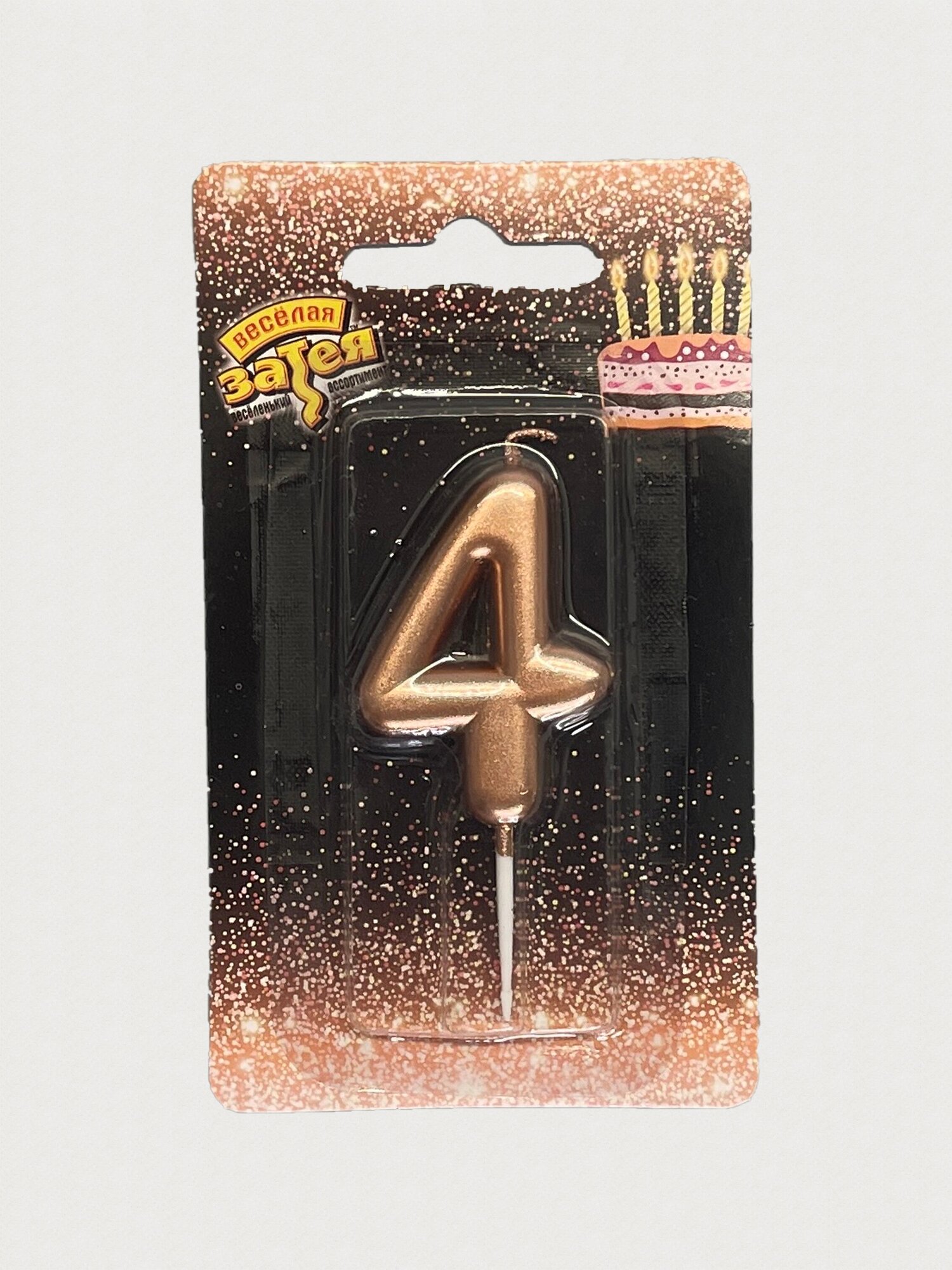 Свеча д/торта. ЕТ. Цифра "4". 4.5см. розовое золото. к/бл. информация: