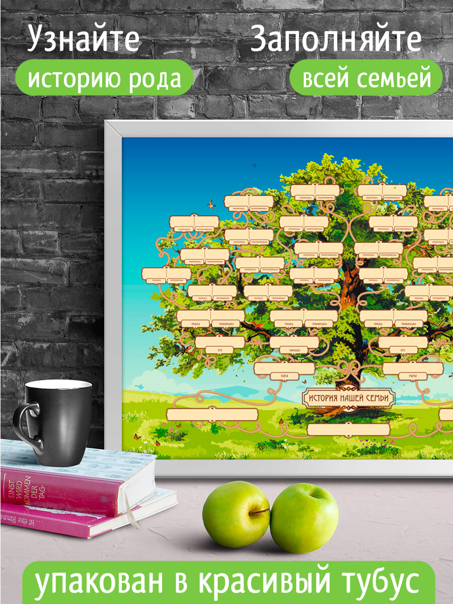 10 цен на Семейное древо, постер для интерьера на стену 60*40 в подарочной упаковке