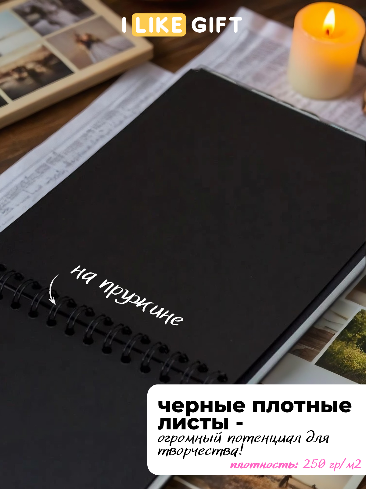 Фотоальбом семейный на пружине для фото, 20х20 см, 40 черных листов 1 249 ₽