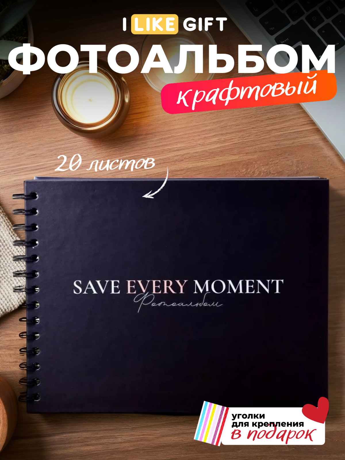 Фотоальбом семейный на пружинах "Сохрани каждый момент", 25х19 см, 20 черных листов информация: