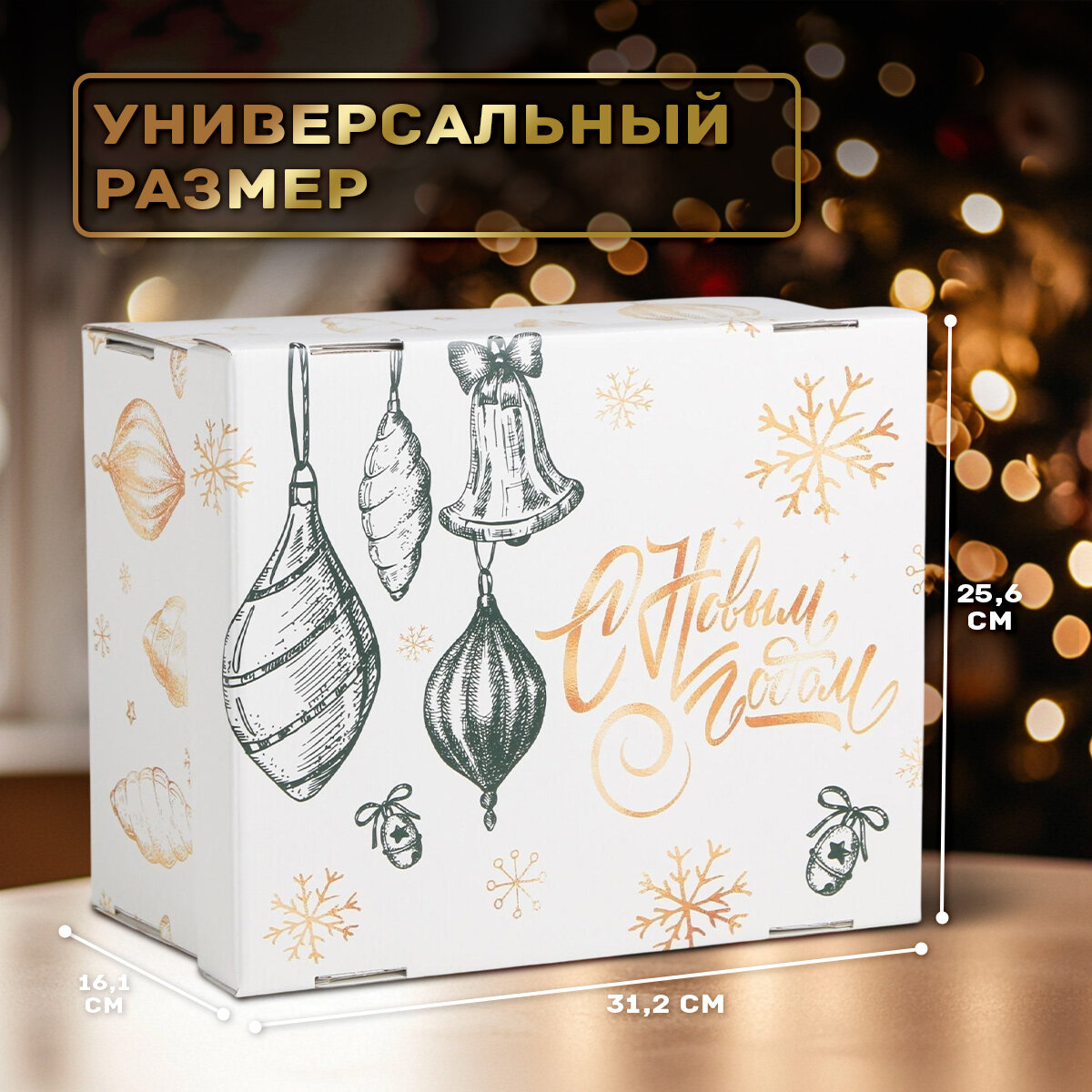 Коробка подарочная новогодняя, 31 х 25 х 16 см, для упаковки подарка на Новый год информация: