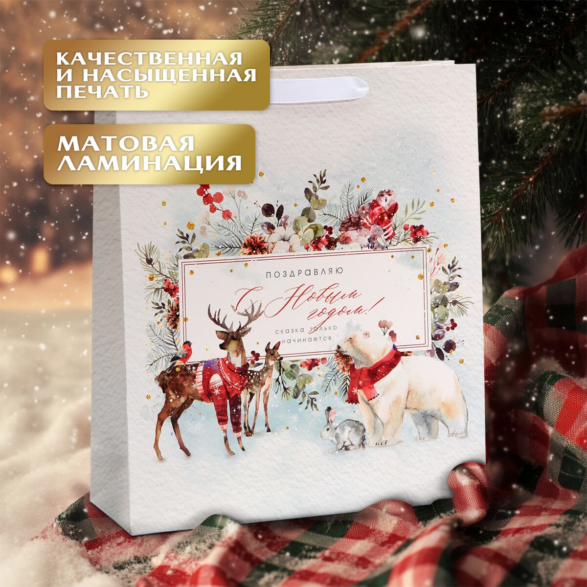 Дарите Счастье Пакет подарочный новогодний ламинированный "Прогулка в зимнем лесу", M 30 х 26 х 9 см 183 ₽