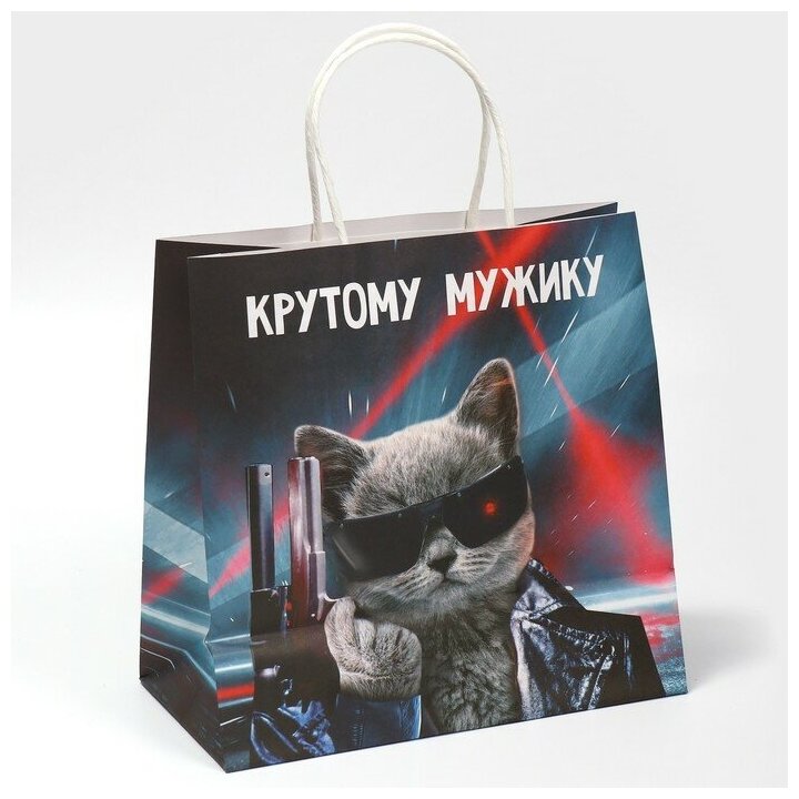 Пакет подарочный крафтовый «Мужику», 22 х 22 х 11 см, для упаковки подарка информация: