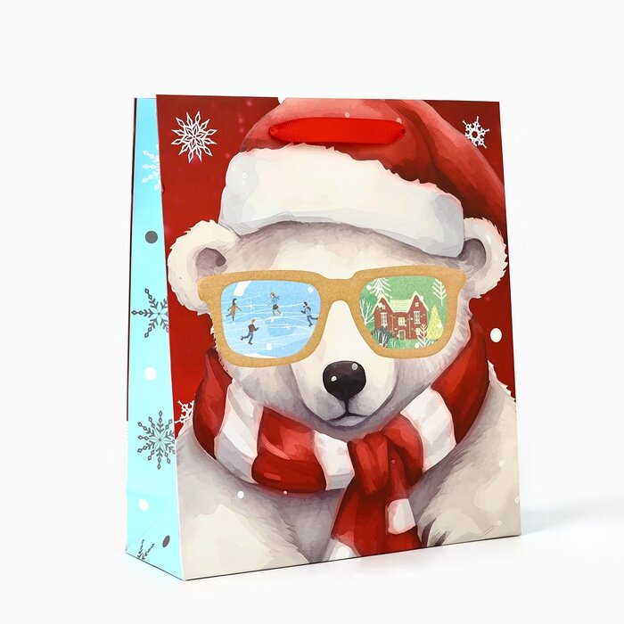 Отзывы на Подарочный пакет новогодний ламинированный, M 30 х 26 х 9 см, «Медвежонок», конгрев, для упаковки подарка на Новый Год