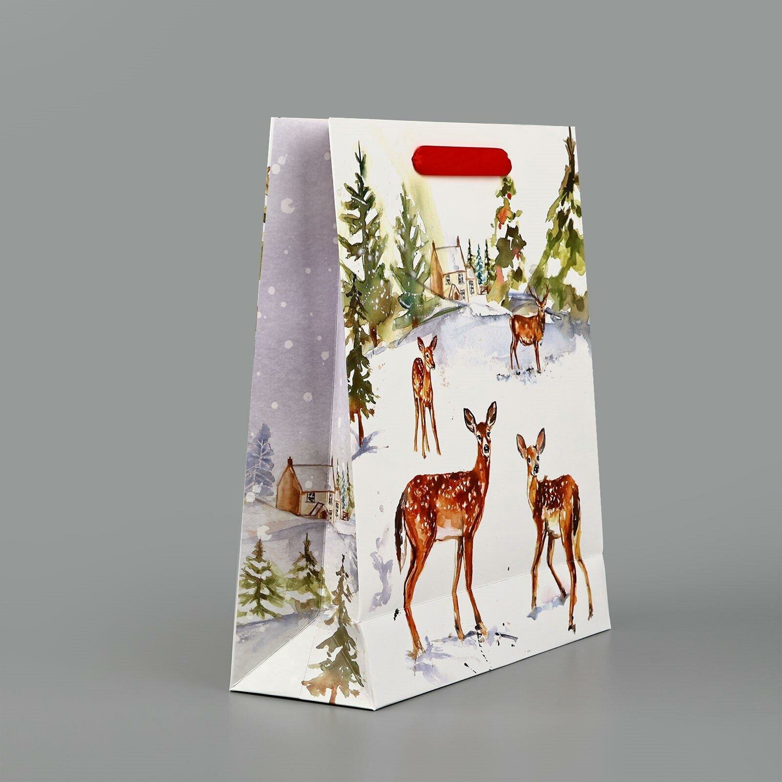 Дарите Счастье Пакет подарочный новогодний ламинированный "Прогулка в зимнем лесу", M 30 х 26 х 9 см информация: