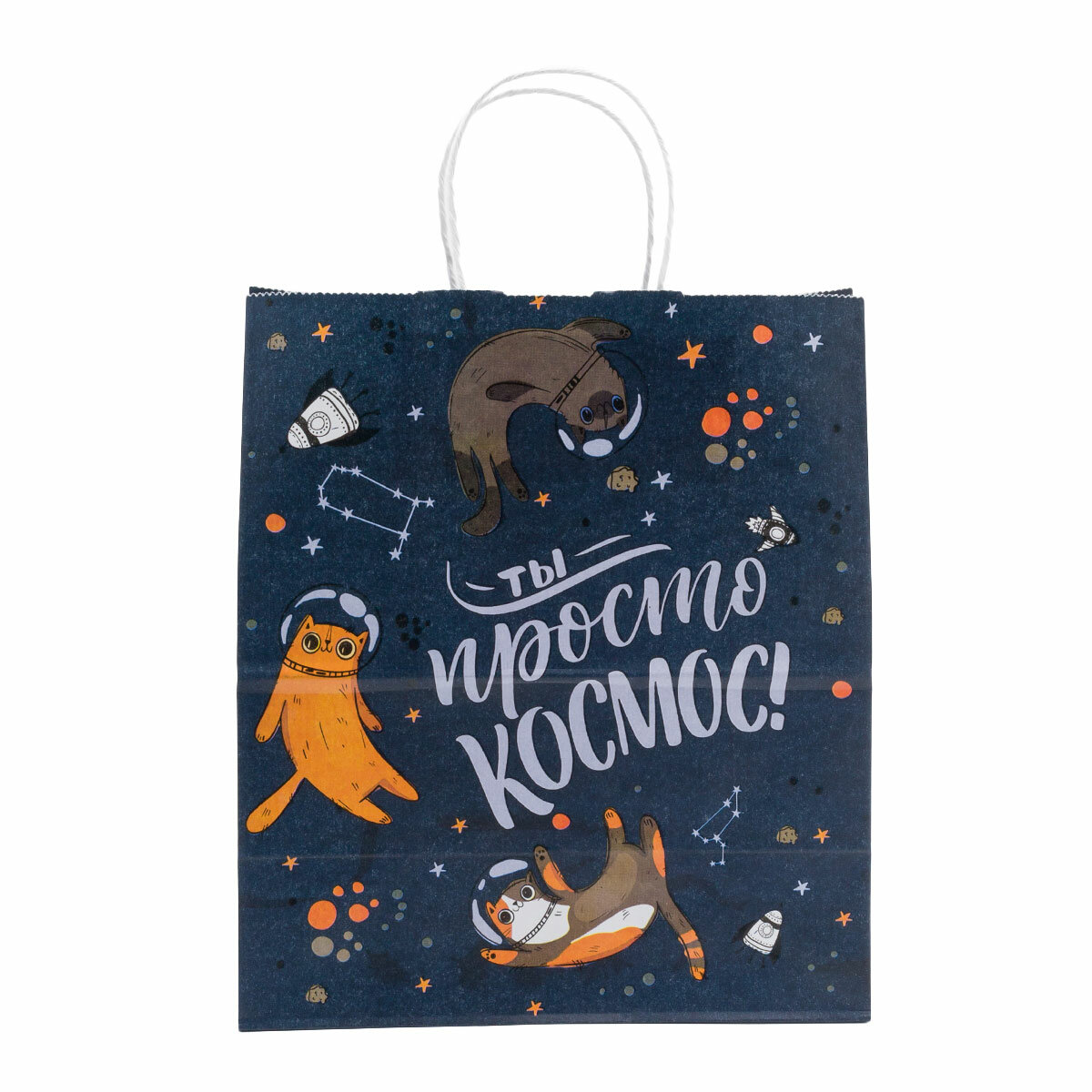 Пакет подарочный крафтовый с ручками, принт 'Ты просто космос' Арт Узор, тёмно-синий, 100 г/м2, 25*22*12 см информация: