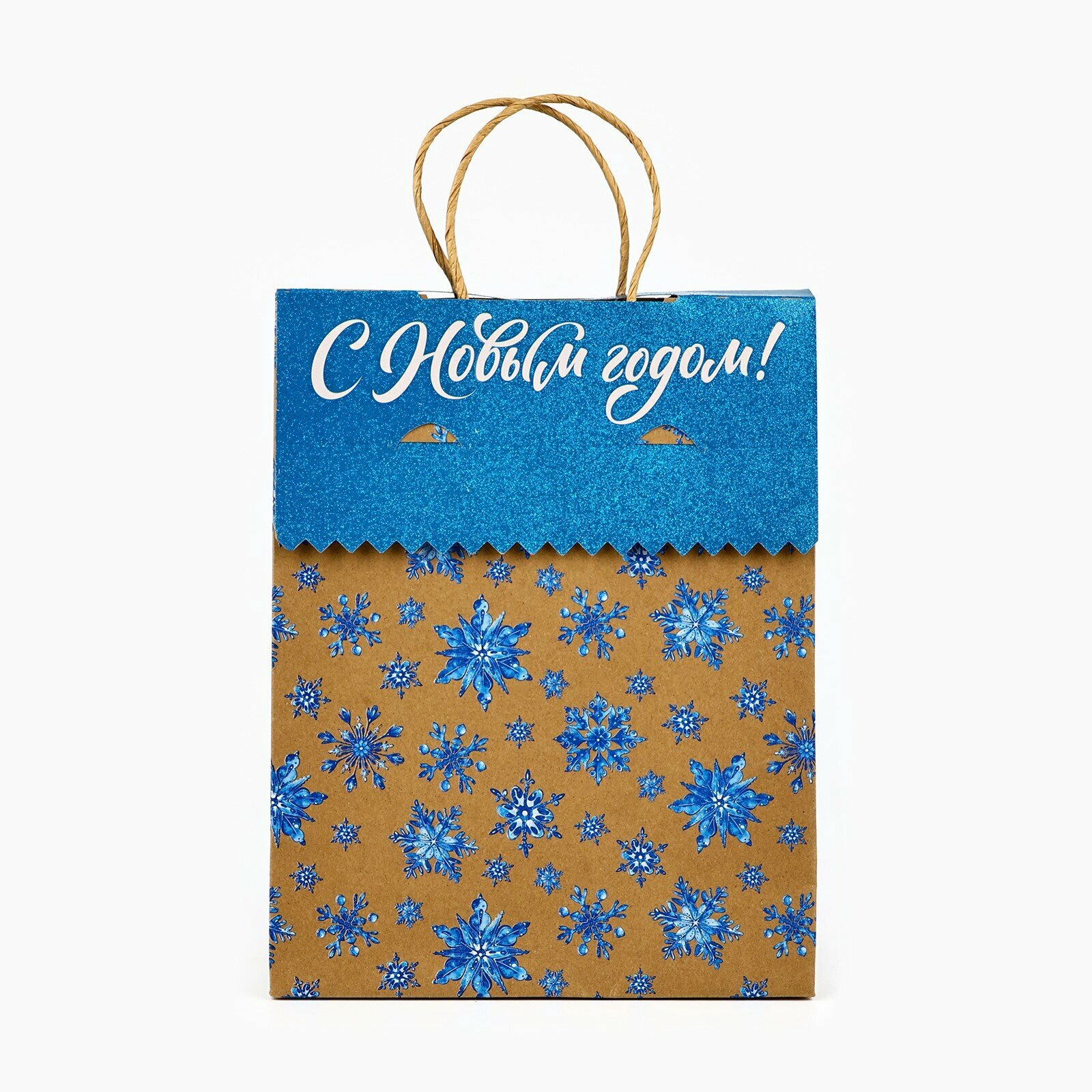 Отзывы на Подарочный пакет с клапаном «Снежинки», крафт, глиттер, 19.5 х 10 х 25 см, для упаковки подарка на Новый Год