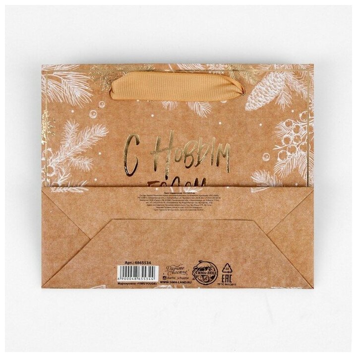 Пакет крафтовый горизонтальный «С Новым годом», S 15 × 12 × 5.5 см информация: