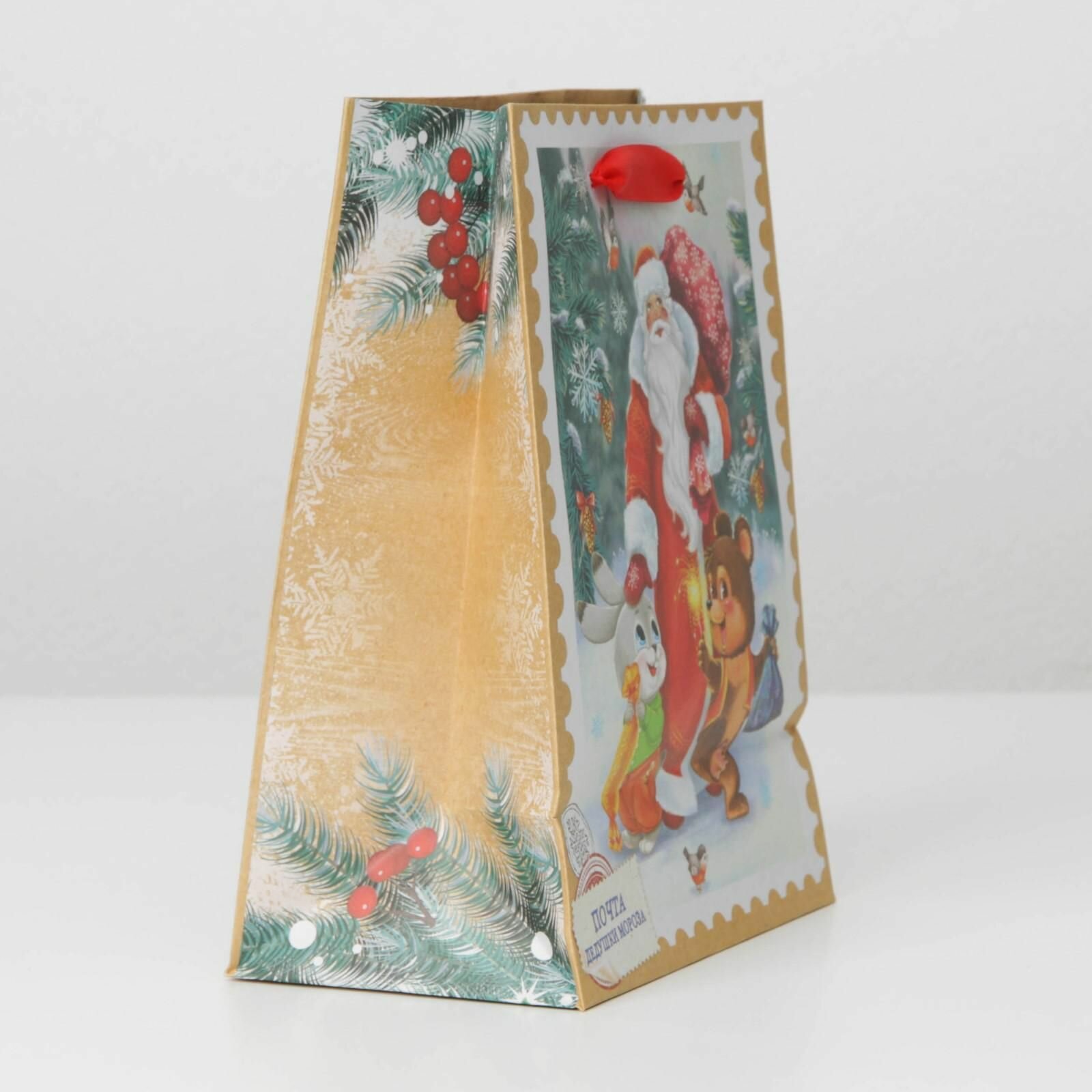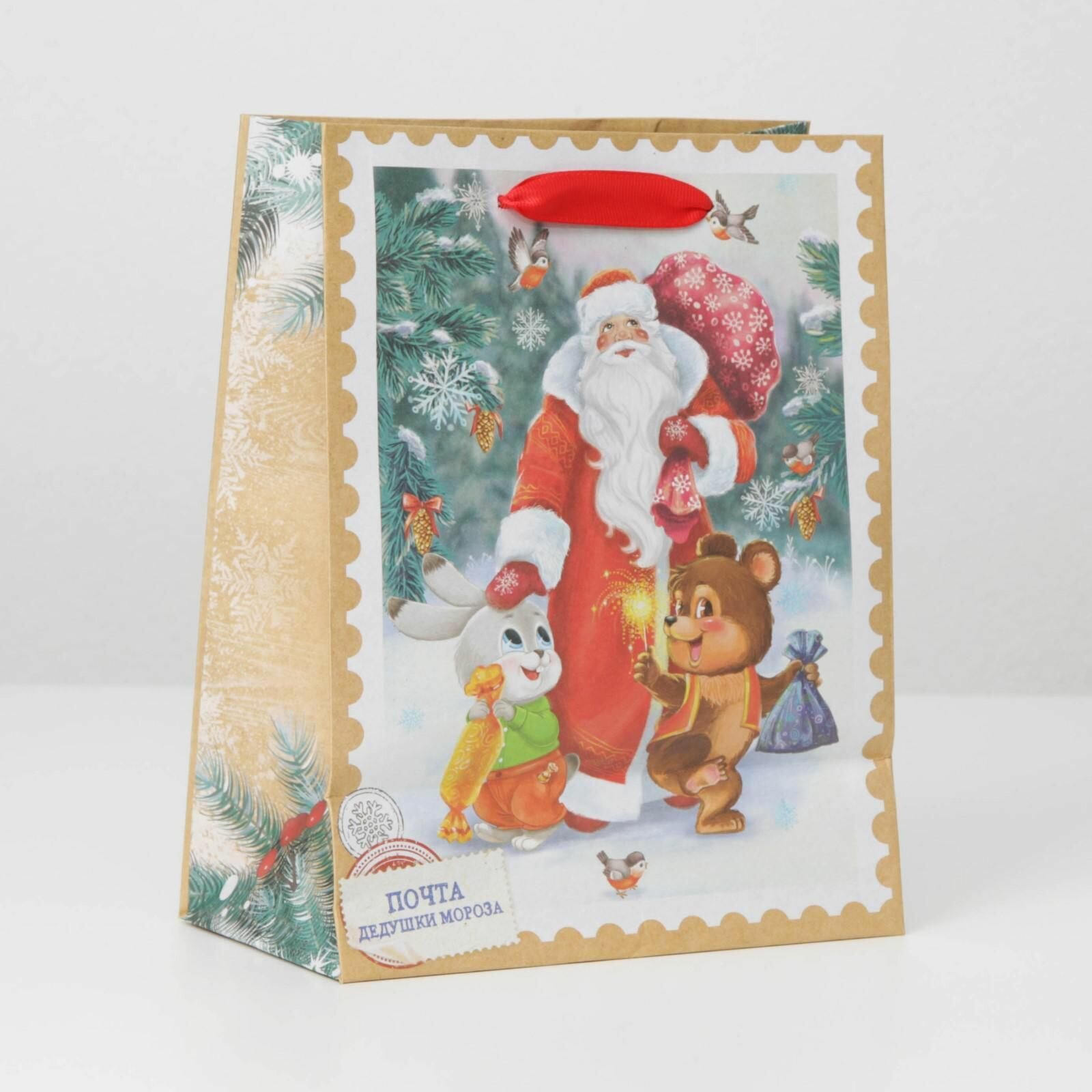 Пакет крафтовый вертикальный "Дедушка мороз и зверята", MS 18 x 23 x 10 см информация: