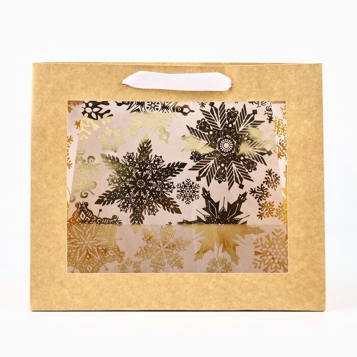 Отзывы на Пакет подарочный новогодний крафтовый с пластиковым окном «Gold», 24 х 20 х 11см