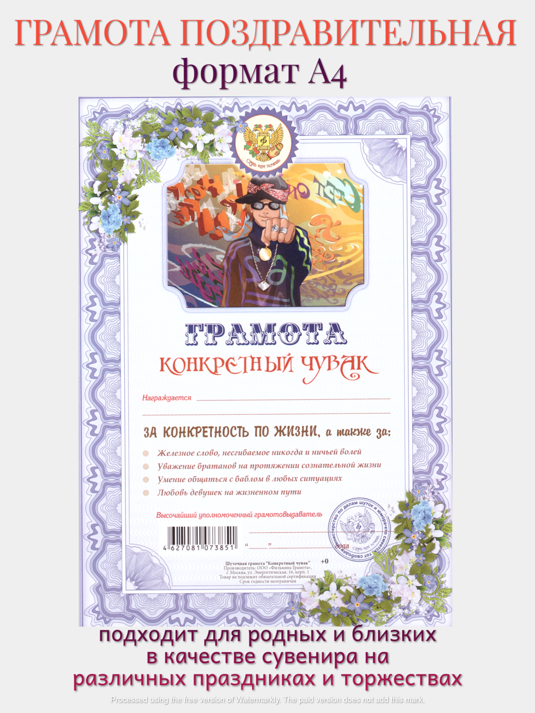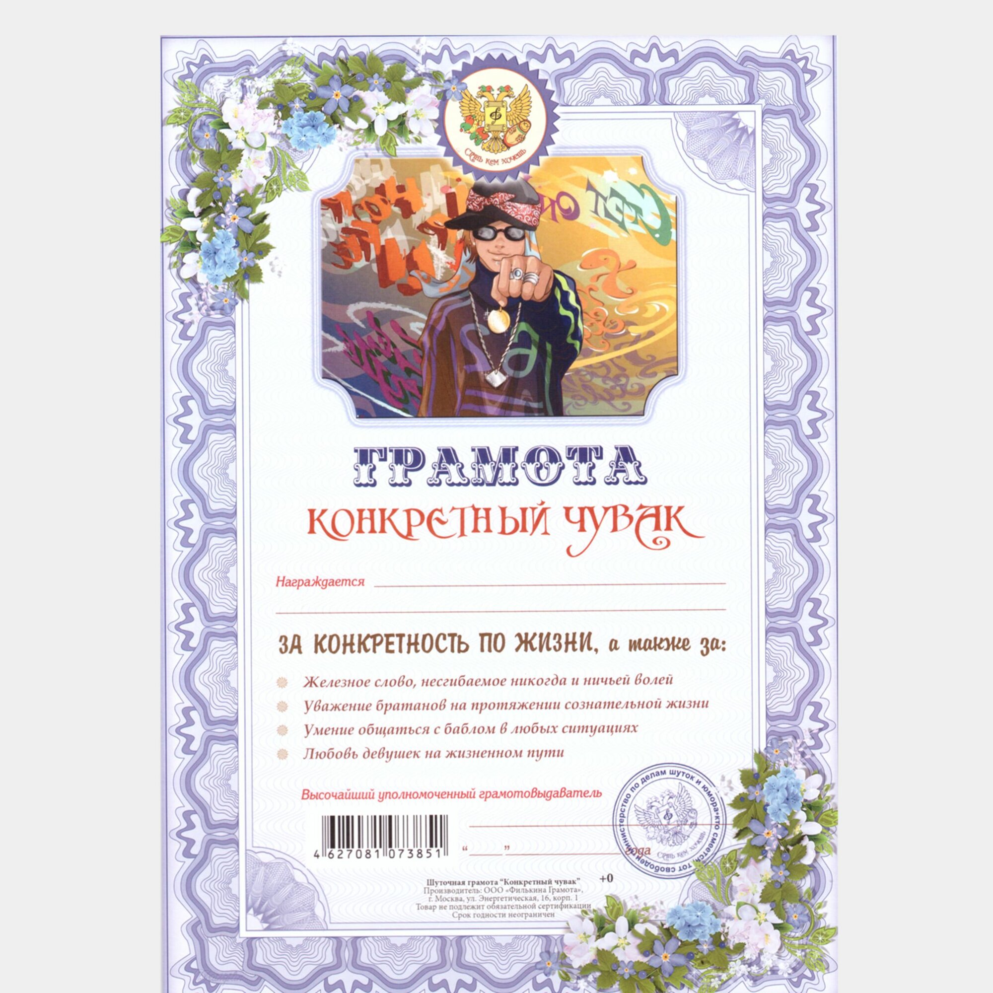 10 цен на Грамота "Конкретный чувак", формат А4, Филькина грамота, картон