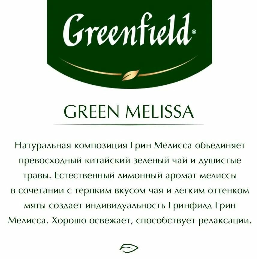 Чай в пакетиках зеленый Greenfield Green Melissa, 25 шт Мелисса информация: