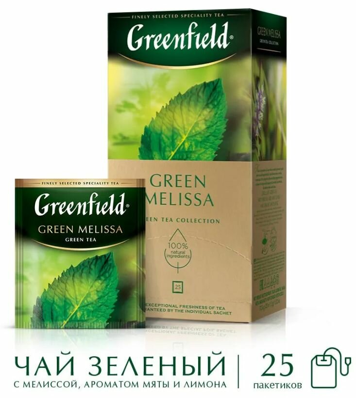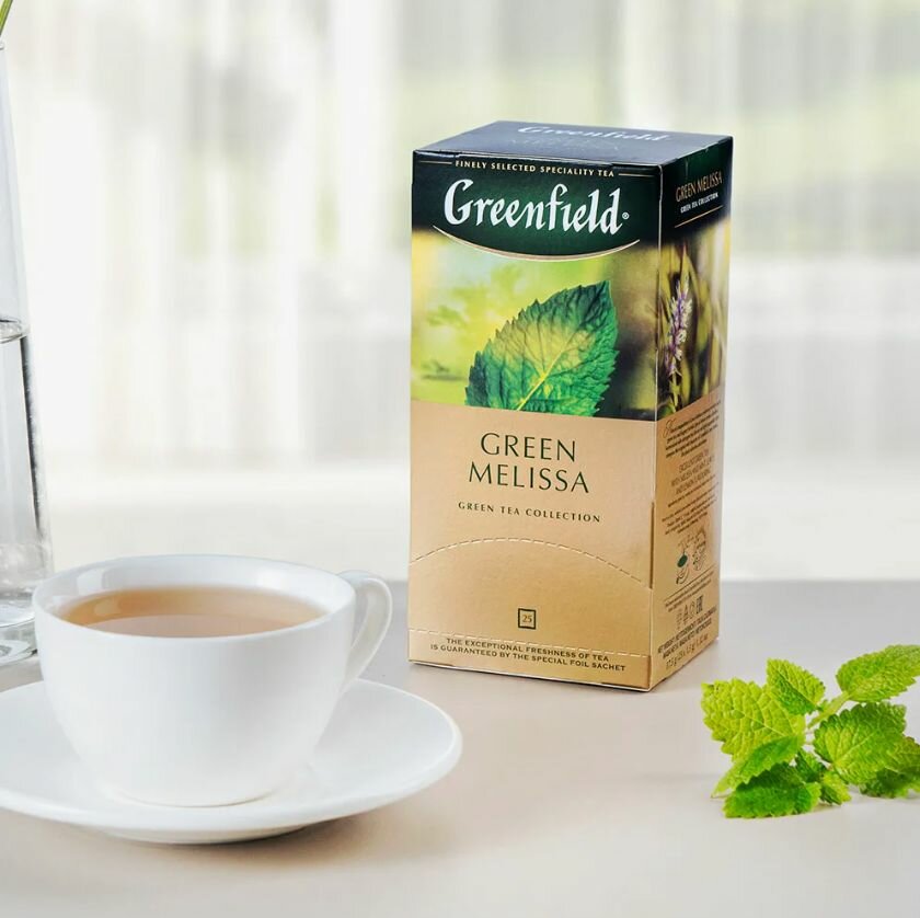 | Состав набора | Гринфилд Грин Мелисса чай зеленый с добавками пакетированный, 100 пакетиков по 1,5 г, в картонной упаковке |