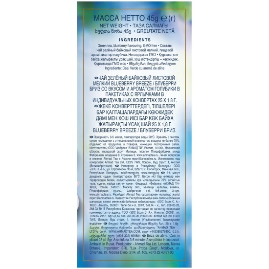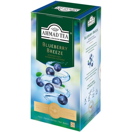 Чай зеленый Ahmad Tea Блуберри Бриз с ароматом голубики 25 пакетиков информация: