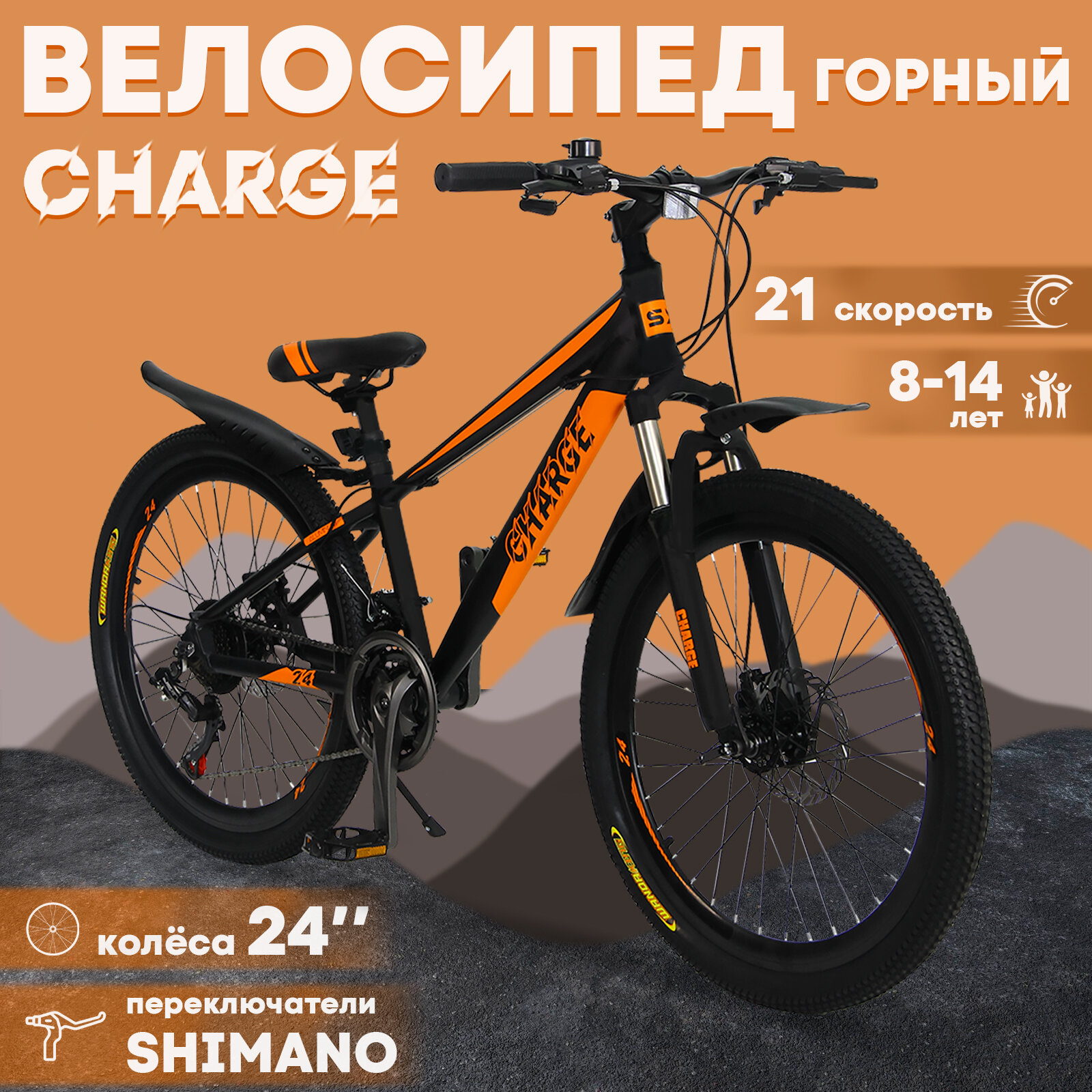 Горный велосипед детский скоростной Charge 24" черный, 8-14 лет, 21 скорость (Shimano tourney) информация: