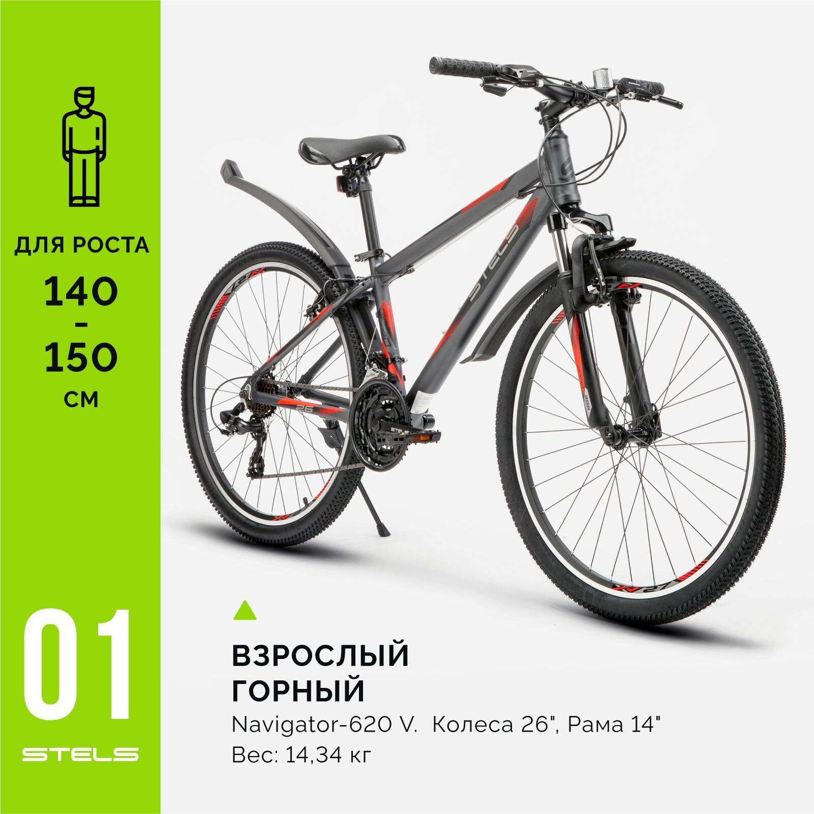 Велосипед горный Navigator-620 V, колеса 26" K010, рама 14" Матово-серый (item:500) информация: