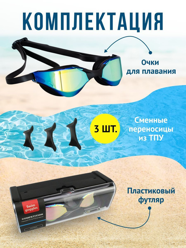 | Особенности очков | антифог-покрытие, для открытой воды, для соревнований, для тренировок, зеркальное покрытие, регулируемая переносица |