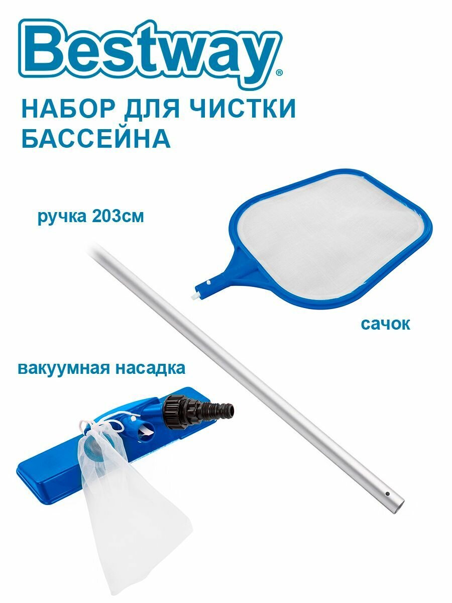 Набор для чистки бассейна Bestway: сачок, щетка, ручка 174см 58013 информация: