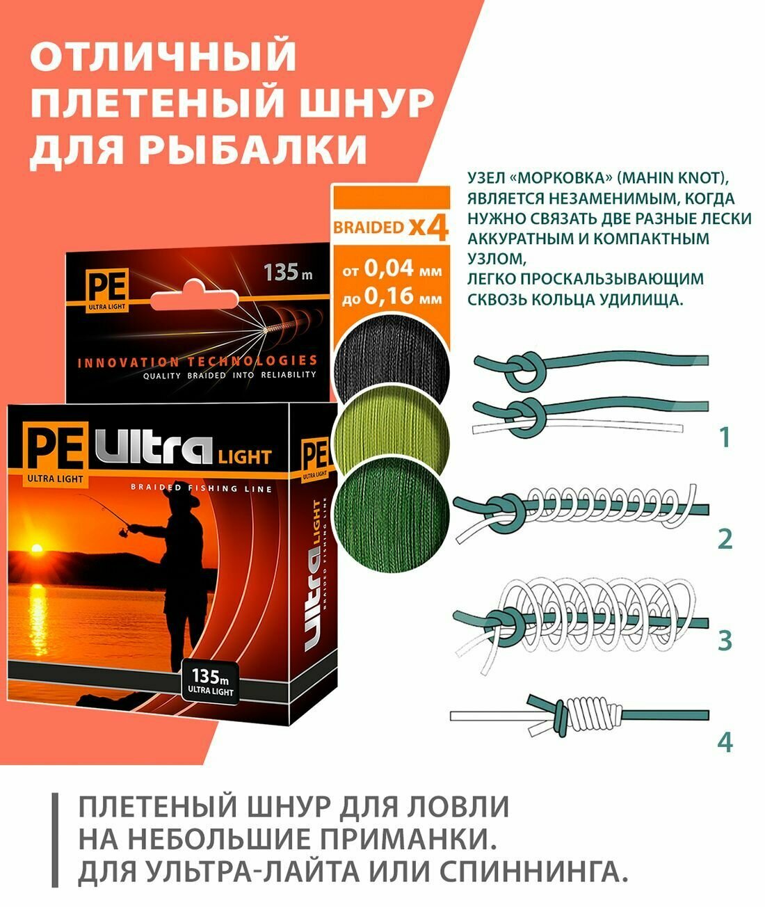 | Дополнительная информация | плетенка 4 нити на спиннинг, троллинг, фидер |