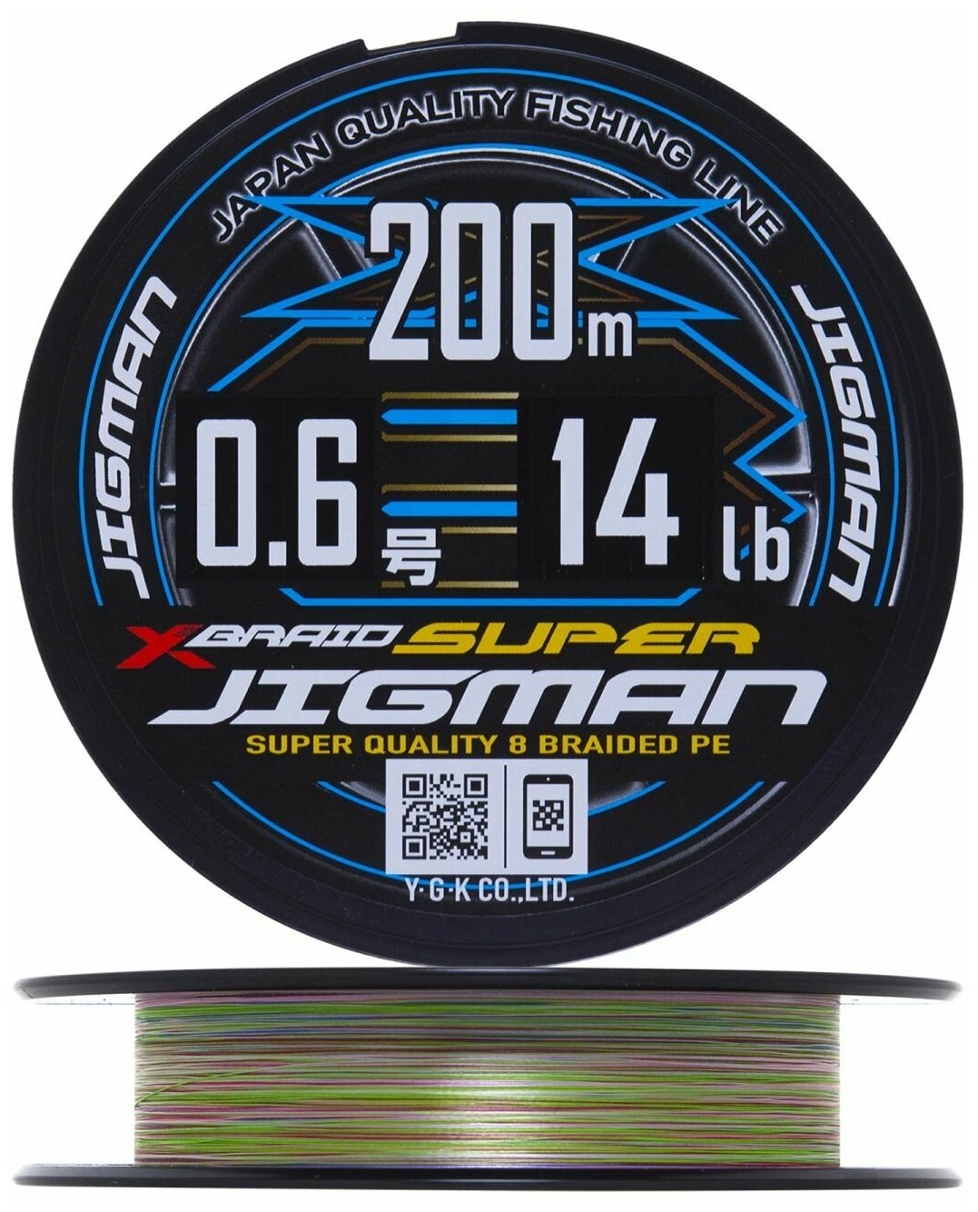YGK, Шнур PE X-Braid Super Jigman X8, 200м, 0.6, 14lb, 5Color
