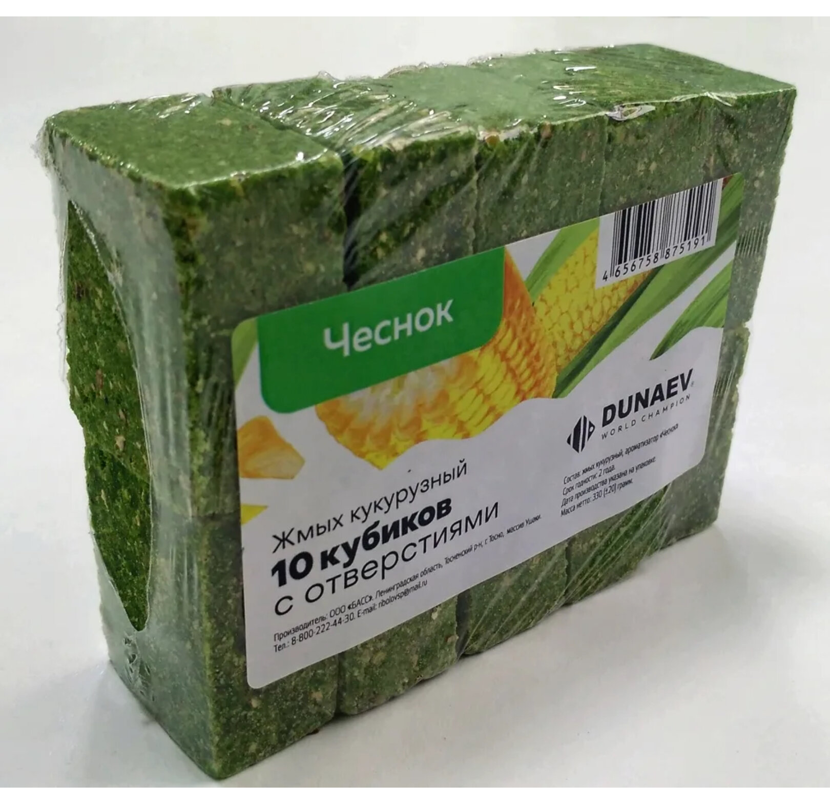 Жмых кукурузный Dunaev чеснок 300 гр (10 кубиков с отверстиями) информация: