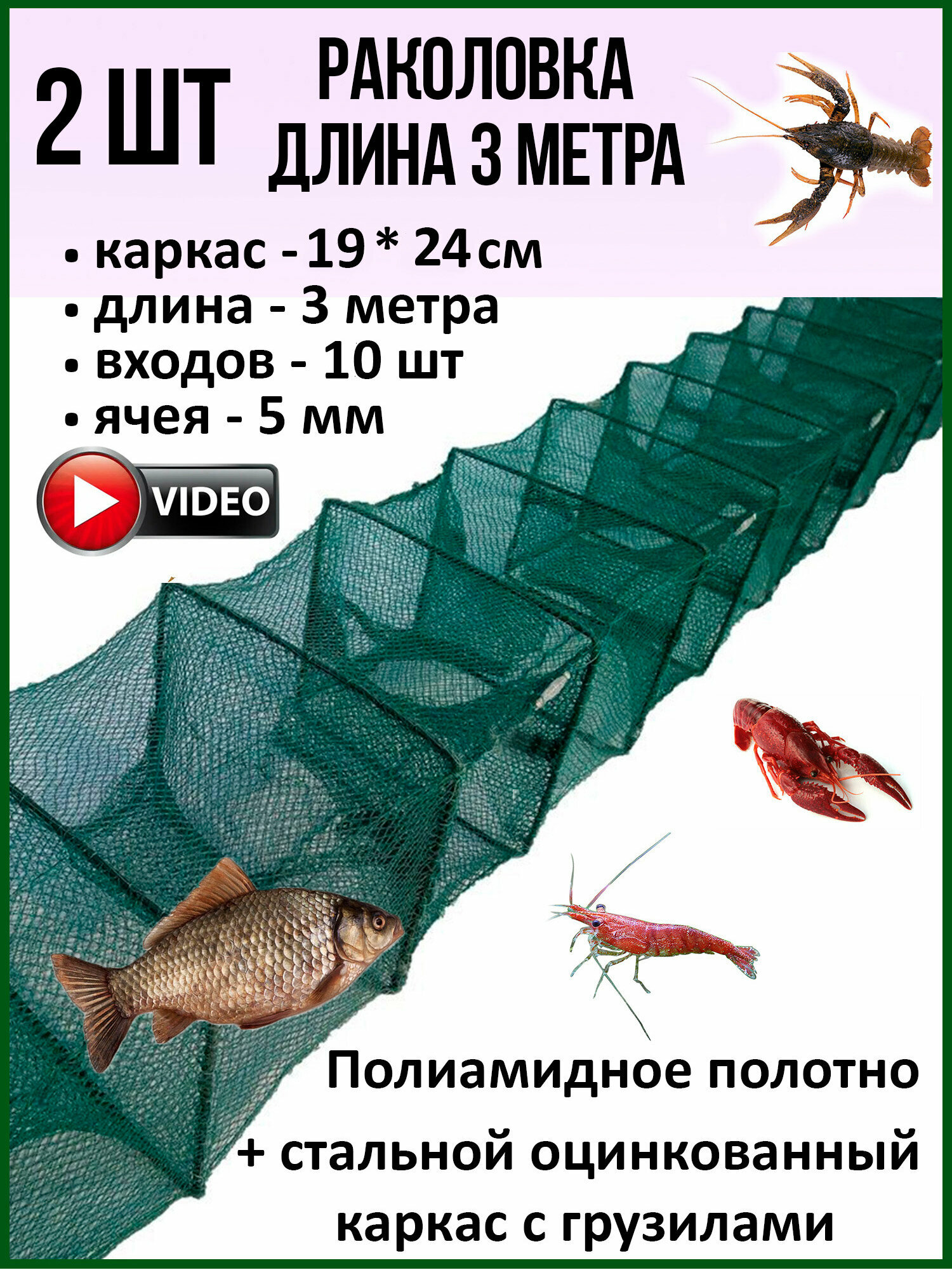 Раколовка, набор 2 шт верша рыболовная длинная информация: