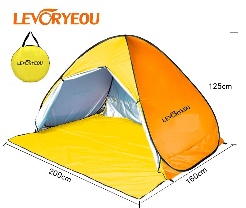 10 цен на Пляжная палатка 3-4 местная от солнца автоматическая летняя быстросборная для отдыха на природе и пикника, оранжево - желтый цвет